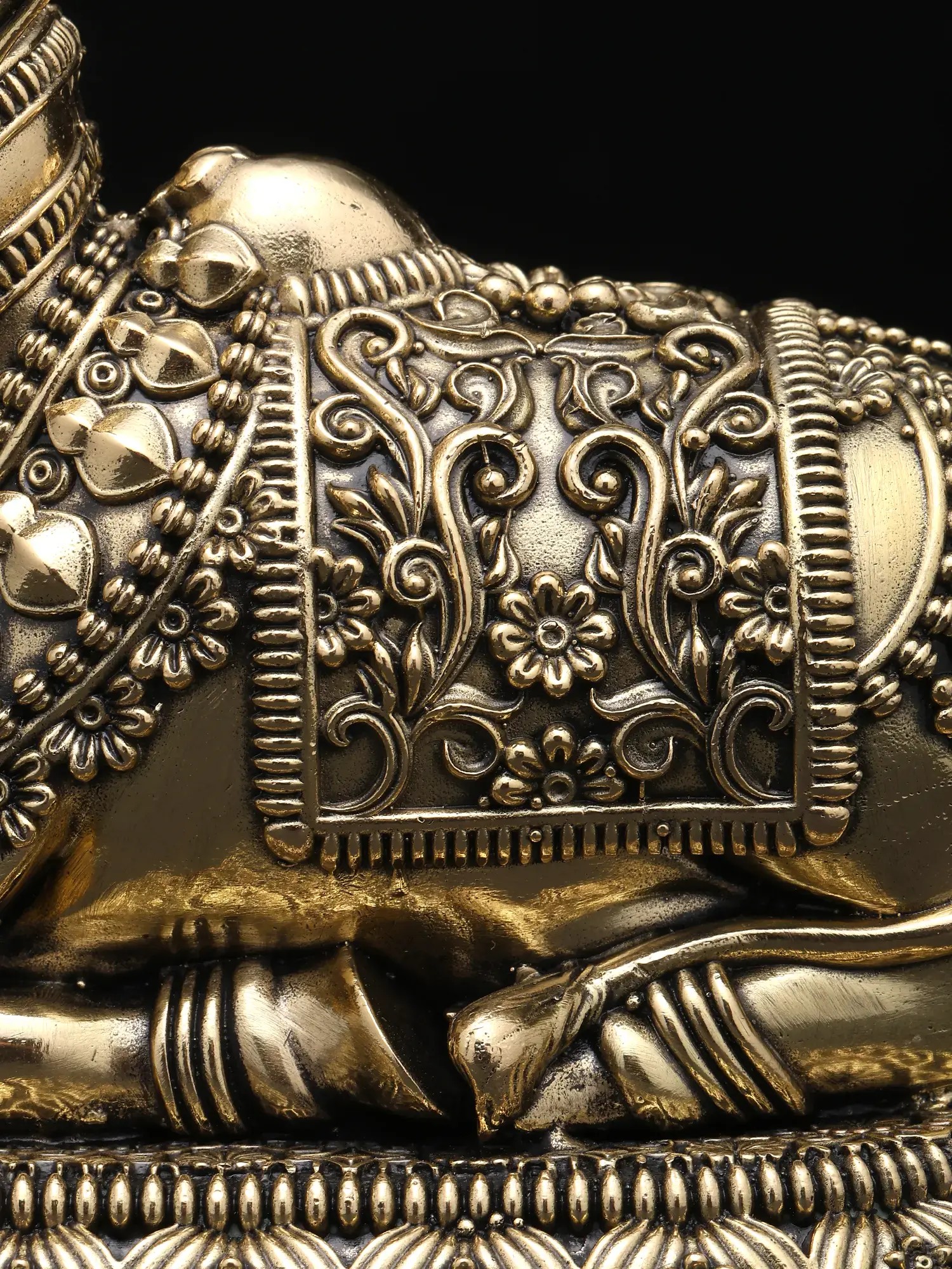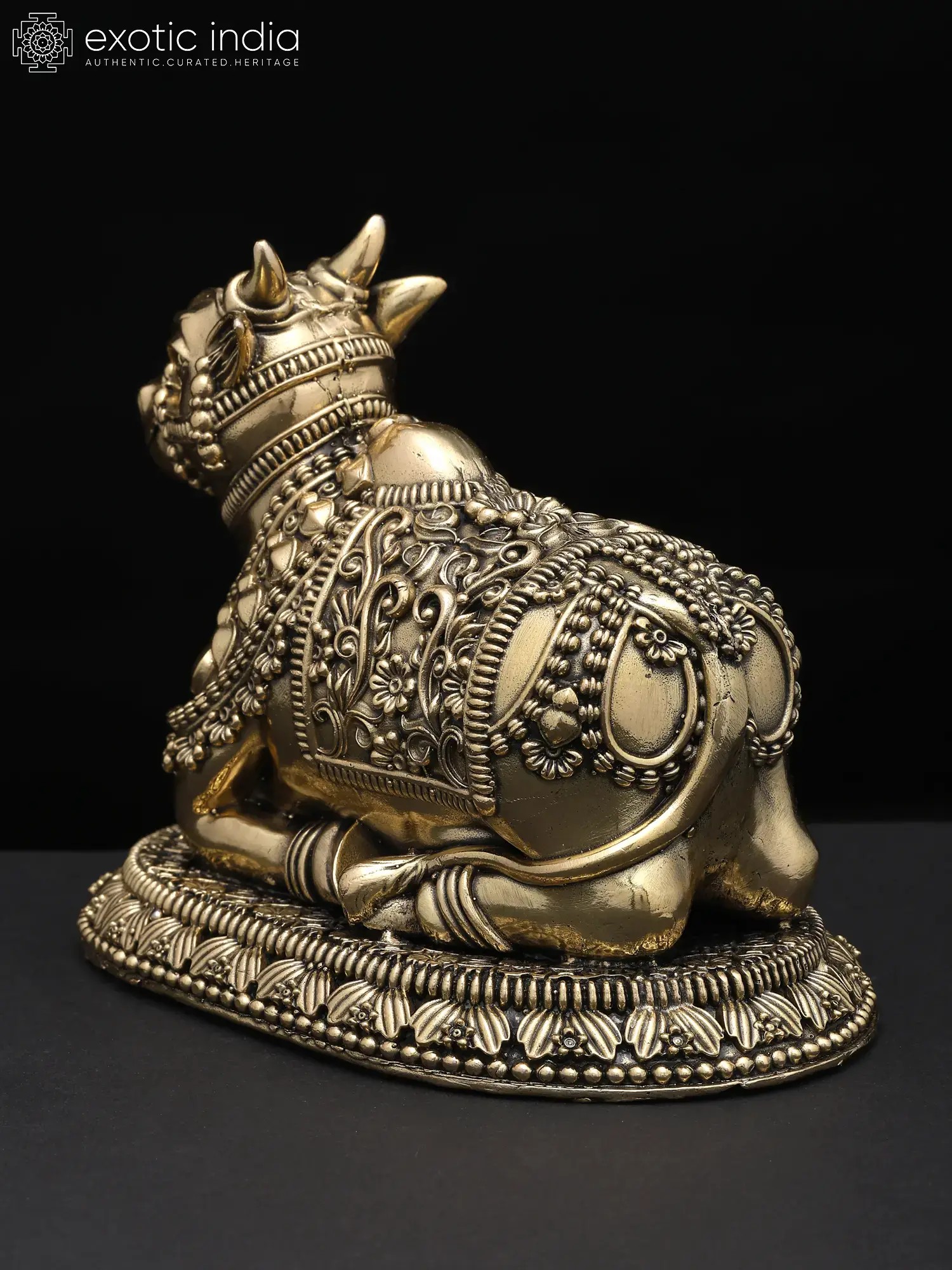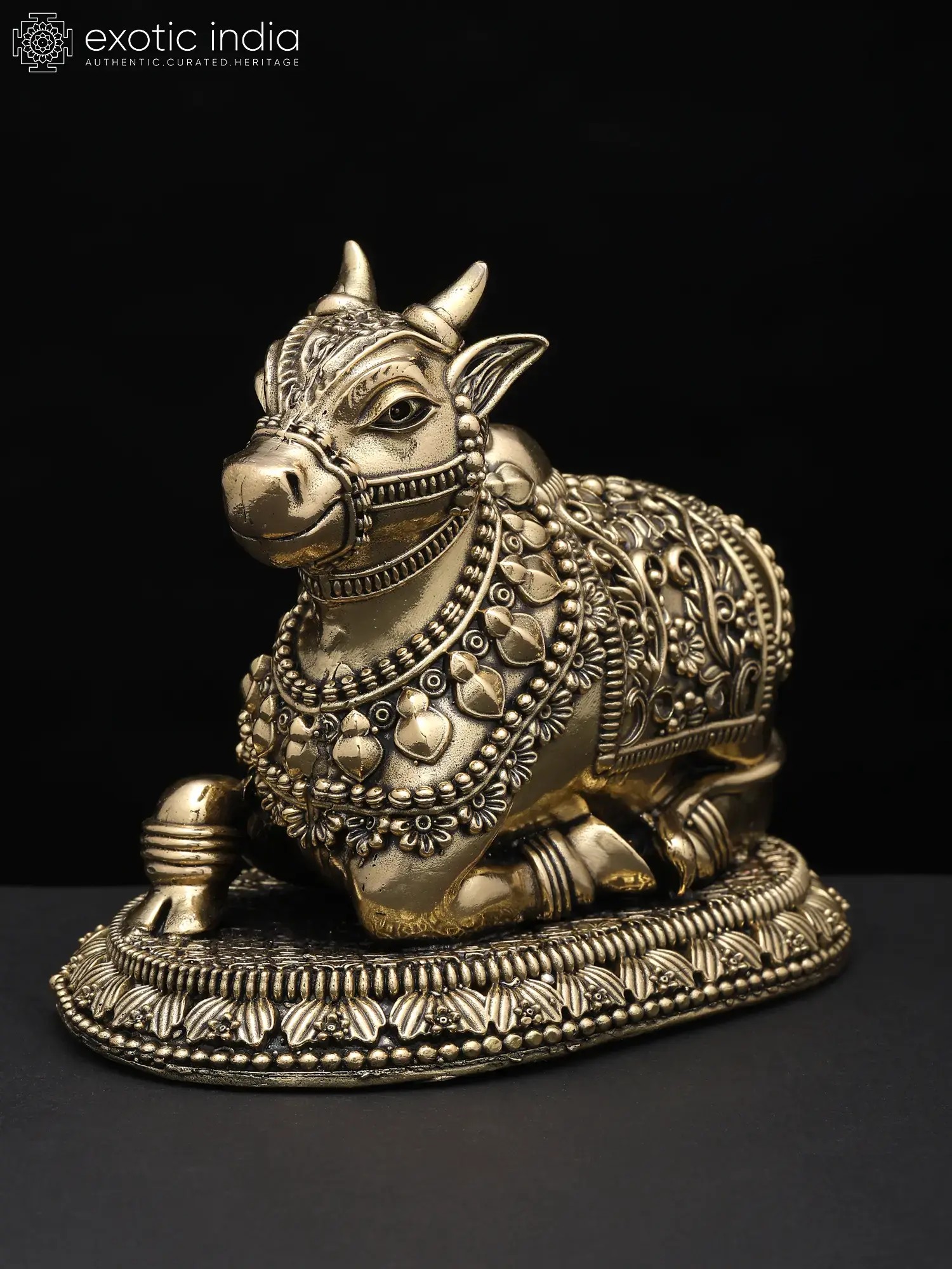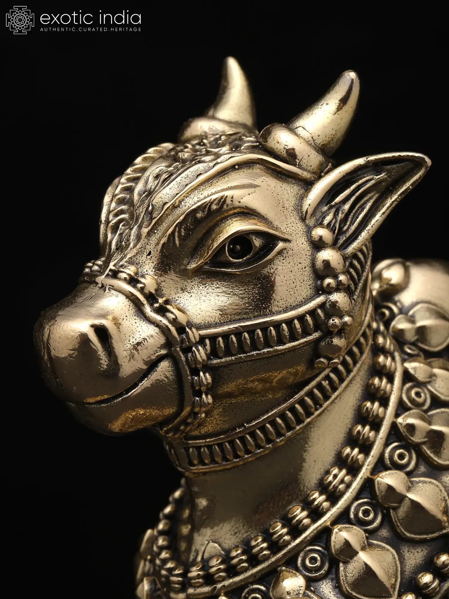4" Small Brass Nandi Mukh Shivalinga with Protecting Naag and Trishul