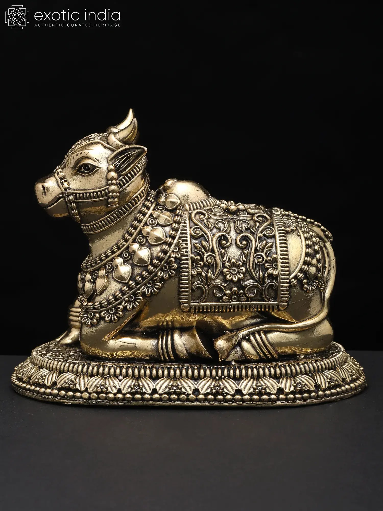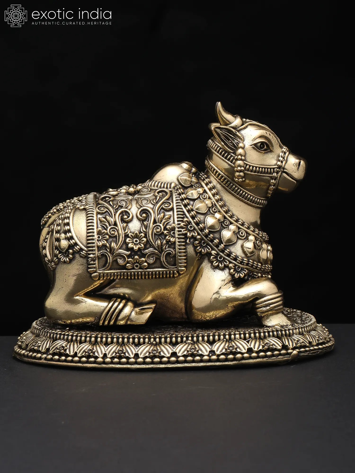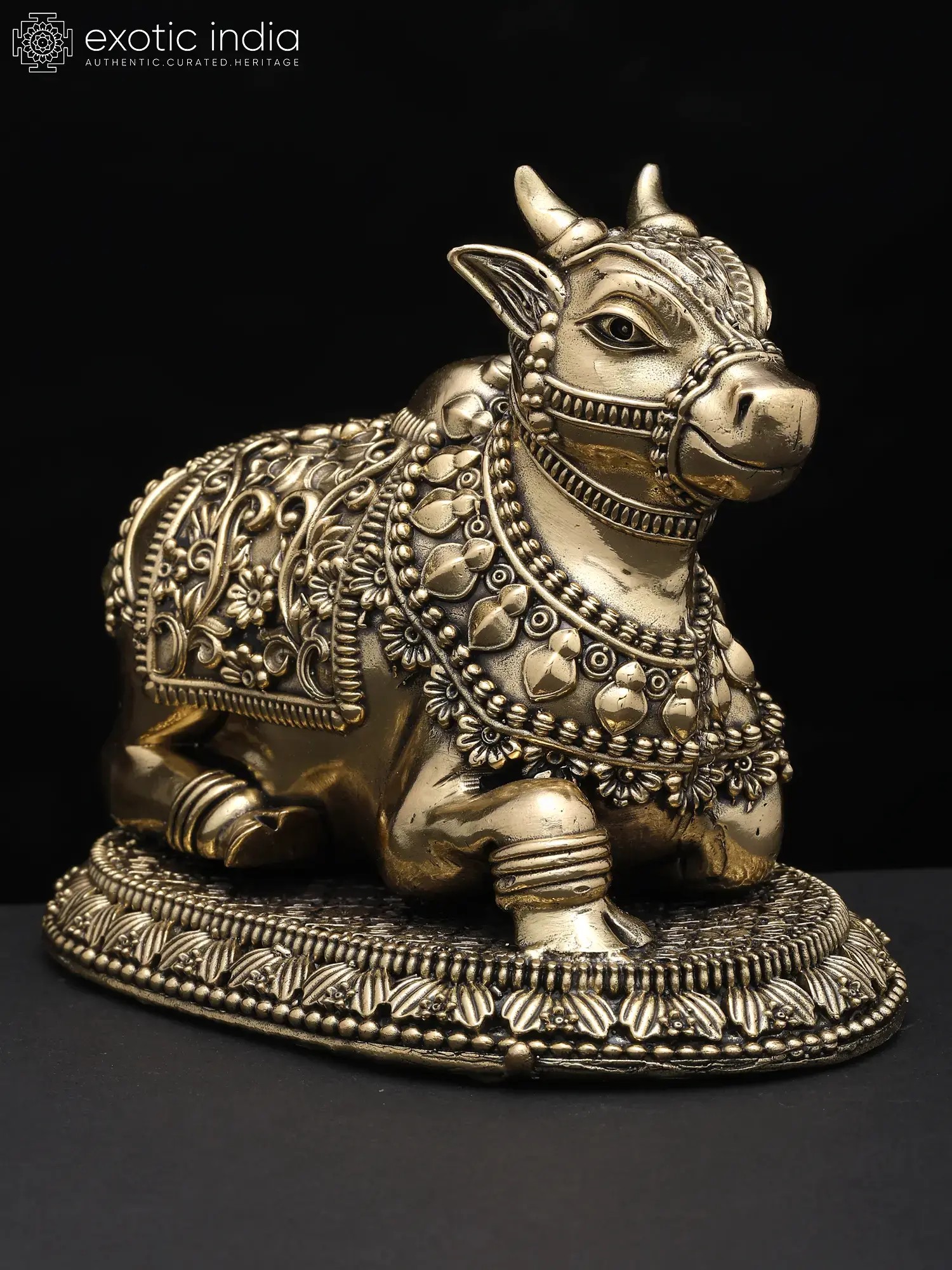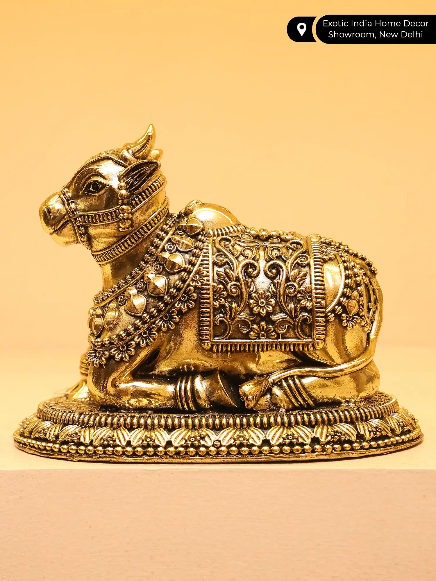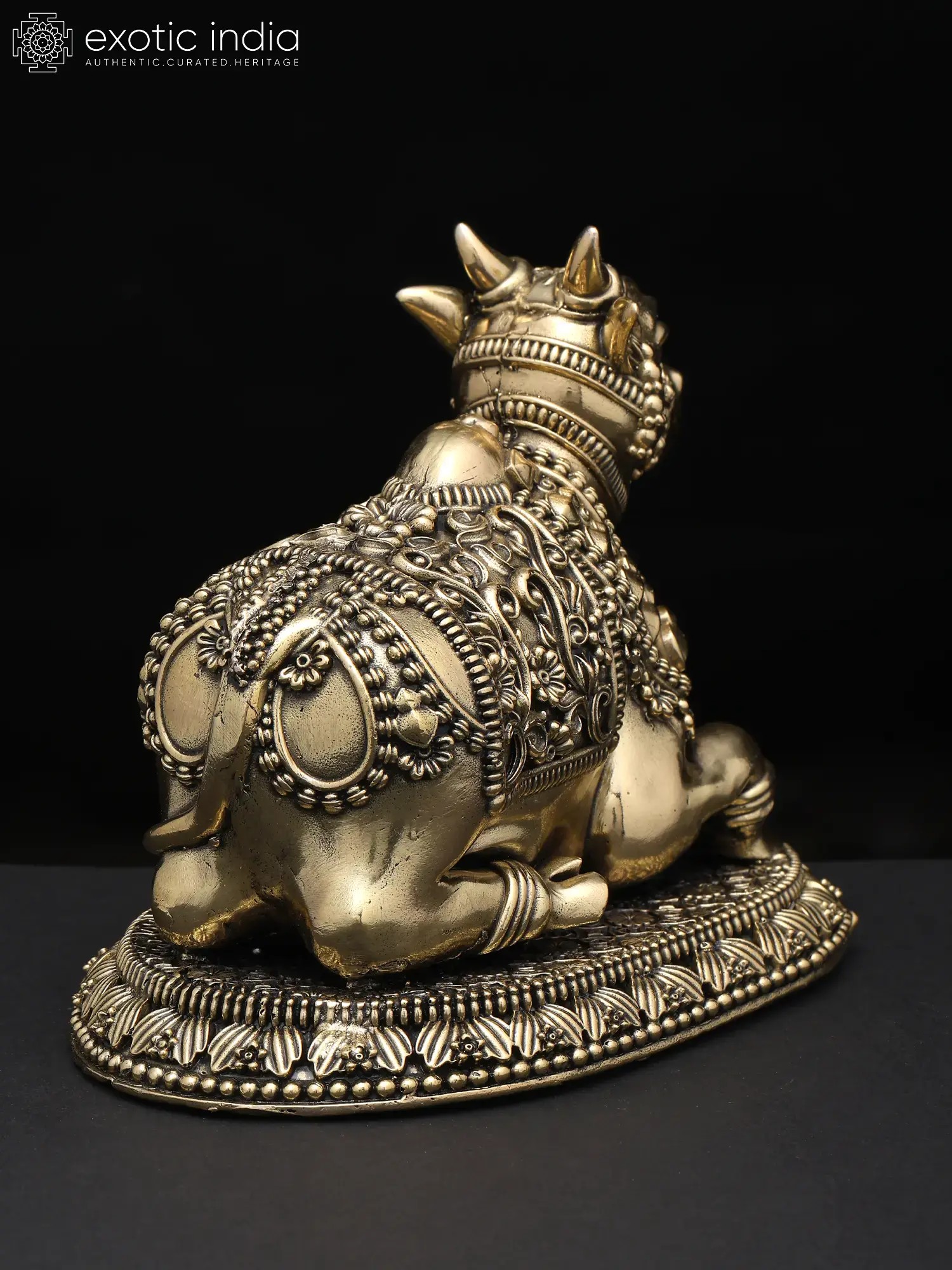 4" Small Brass Nandi Mukh Shivalinga with Protecting Naag and Trishul