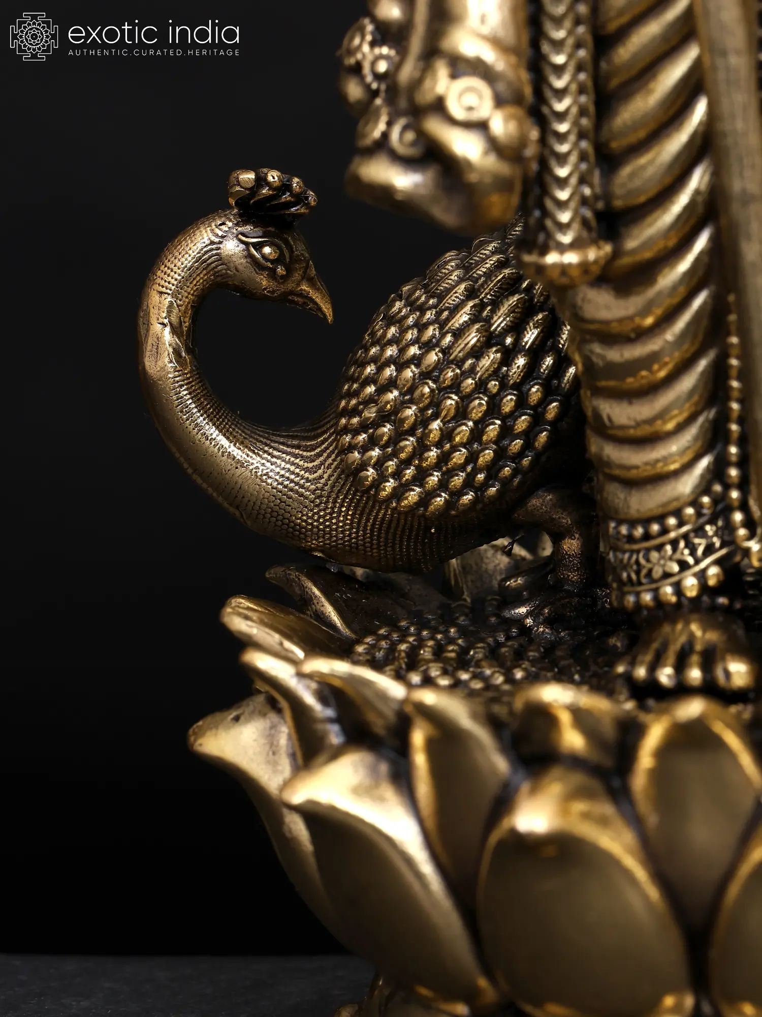 The Senanayaka (commander-in-chief) of Indra’s divine army, Lord Karttikeya infuses this superb brass icon with his guarding presence.