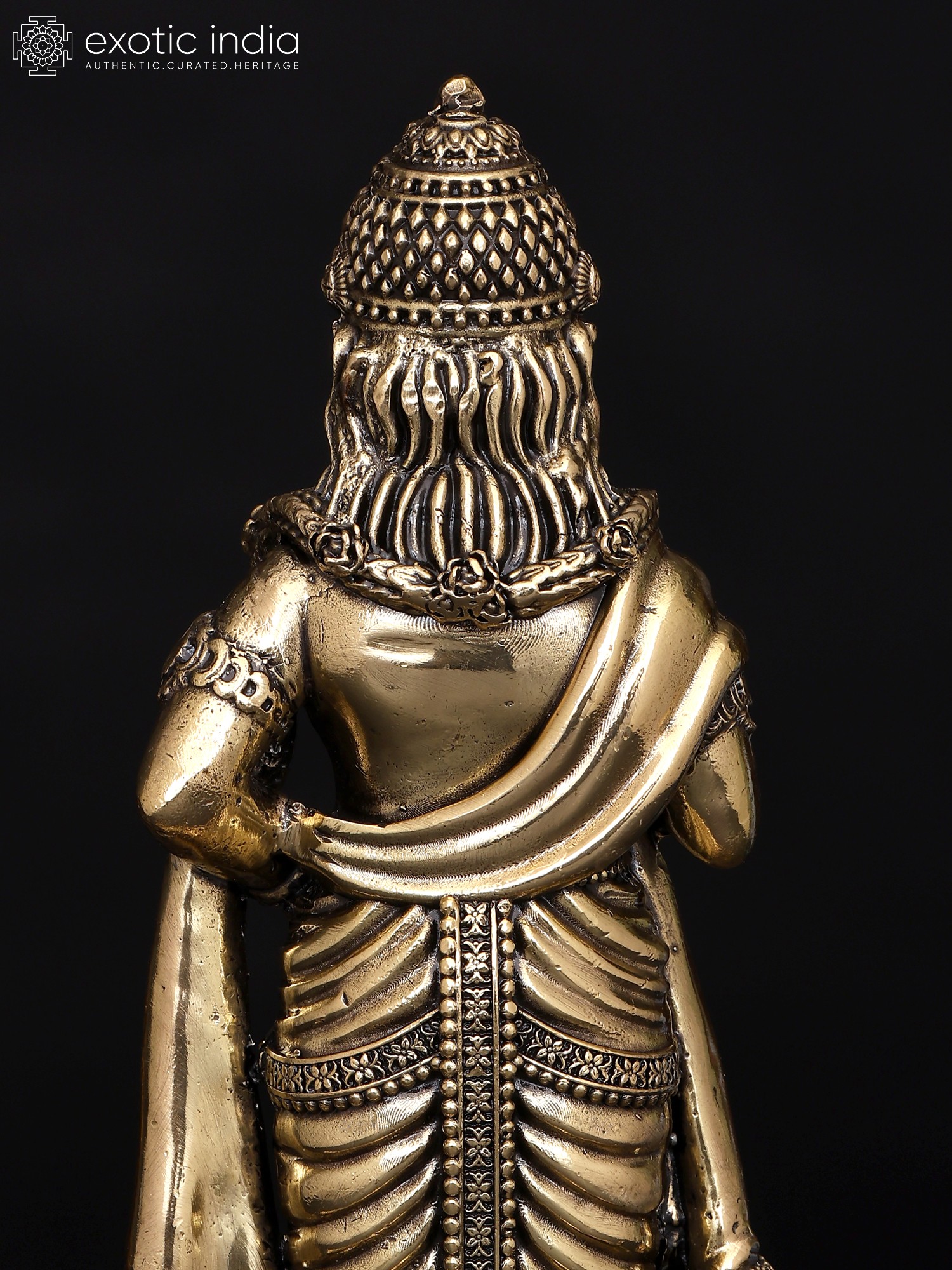 His animated eyes are the central attraction in this superfine brass icon, etched with perfection to give a sense of a watchful divine protector.