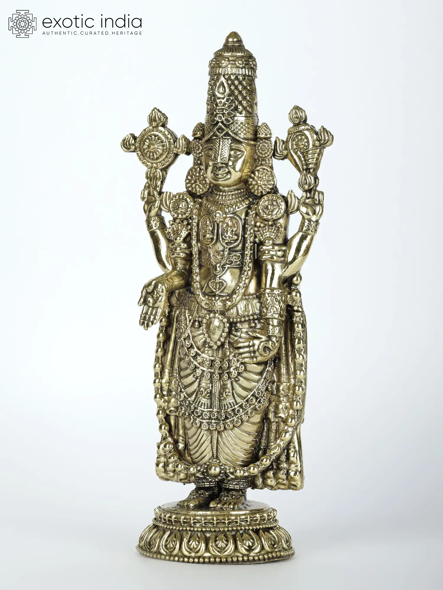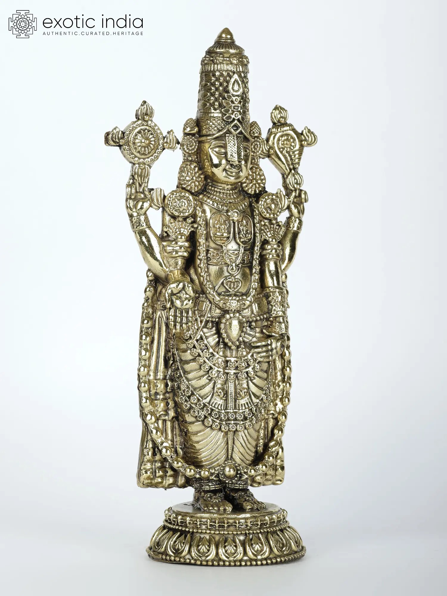 Chaturbhuja (four-armed) Balaji stands upright, with Bhudevi and Sridevi adorning his chest. Artistic finesse is showcased in the animation on Balaji’s face, infusing the surroundings with a sacred aura.
