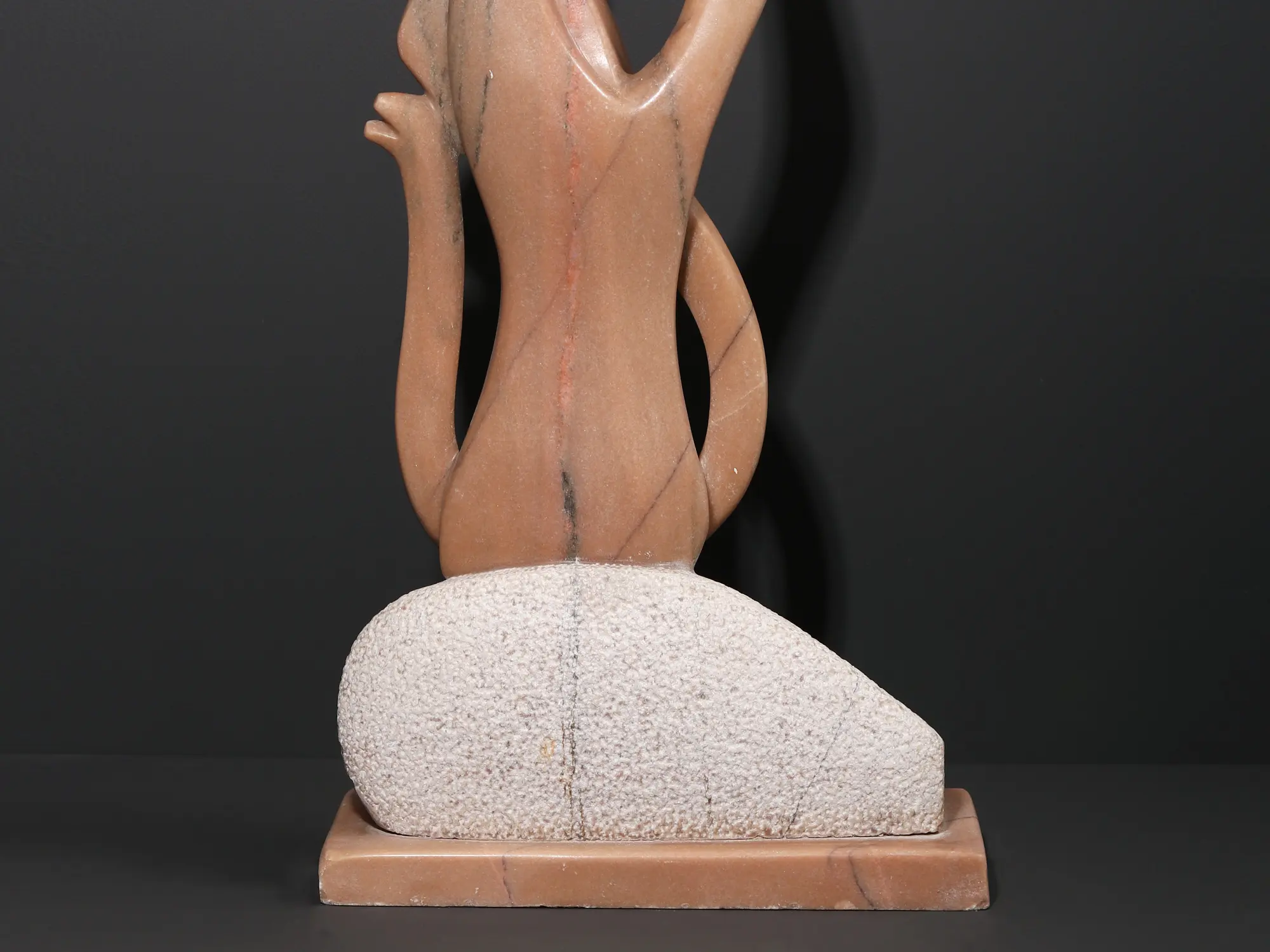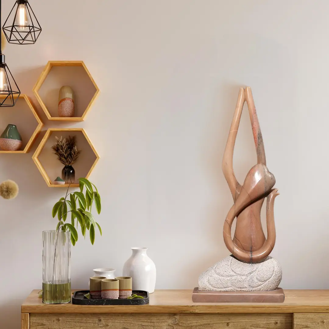 A poetic fusion of devotion and modern form, this abstract Ganesha captures the spirit of reverence in pure, flowing lines. Hand-carved from dual-toned natural marble on a textured pale base, his limbs rise in Namaskara Mudra, the universal gesture of prayer.