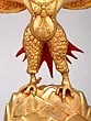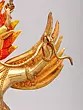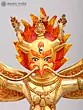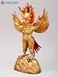 The form of Garuda is divided into half-human, and half-bird, with his torso having a Kubera-like rounded belly and his wings and legs delineated with feathers.