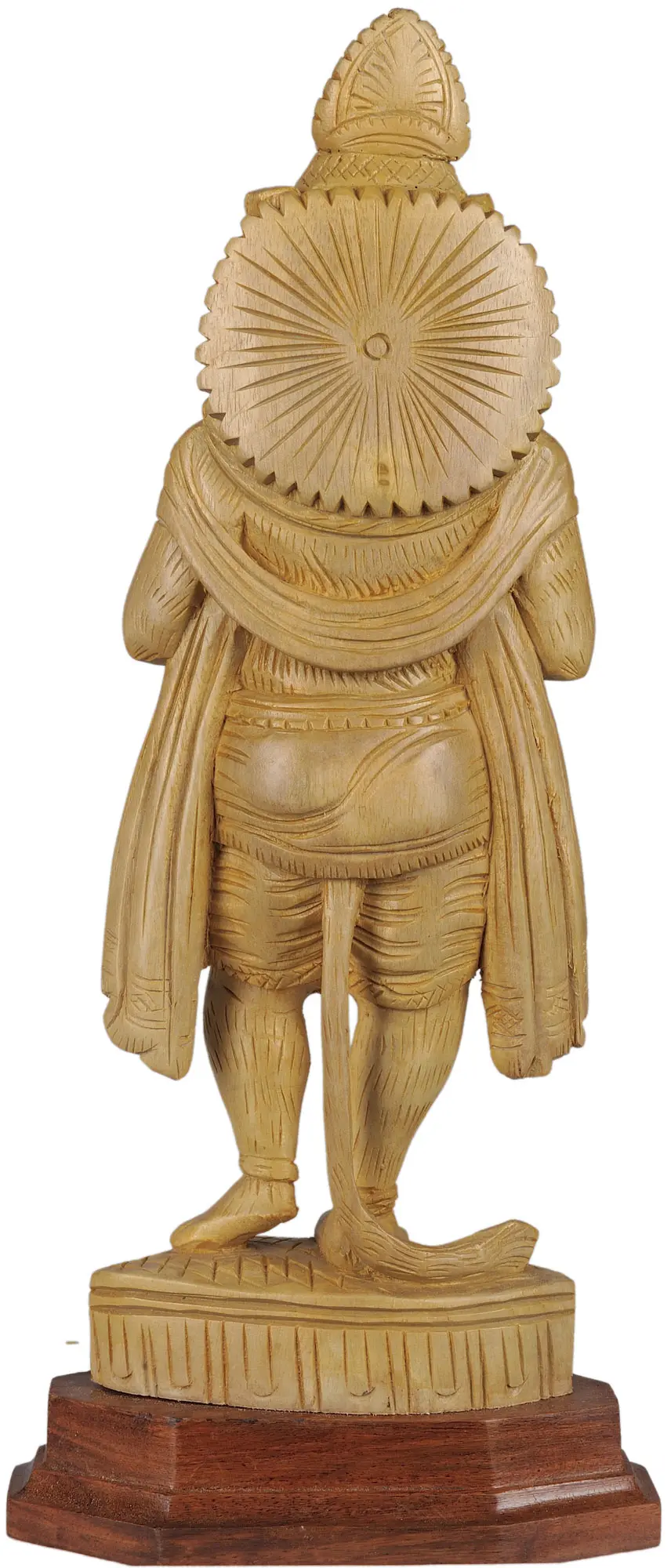 Each detail of this figure is meticulously hand-carved from the finest White Cedar wood, sourced from the lush region of Trivandrum. The artisan’s skill is evident in the smooth, flowing lines and the delicate rendering of textures, capturing the very essence of the revered deity. You'll appreciate the subtle grain of the wood, which adds a unique character and warmth to its presence, ensuring no two pieces are precisely alike.
