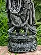 Immerse yourself in the spiritual essence of Lord Krishna, the beloved deity of compassion, love, and divine joy, captured in this exquisite hand-carved black stone statue. This captivating piece embodies the playful and enchanting persona of Krishna, as he stands gracefully, his fingers poised to bring forth the magical melodies of his flute. The deep, rich hue of the black stone lends an aura of profound serenity and timeless elegance, making this statue a truly striking addition to any sacred space or artistic collection.