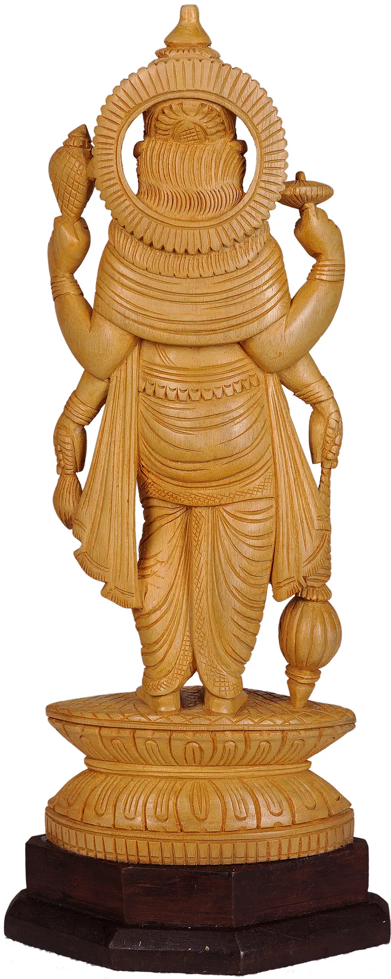 Behold a manifestation of divine presence, meticulously carved from white cedar. This representation embodies Vishnu, the preserver of the cosmos in the Hindu pantheon. Vishnu, the embodiment of peace, order, and righteousness, is often invoked for protection and sustenance. This beautifully handcrafted statue captures the essence of this powerful deity. The light, natural hue of the wood enhances the sense of serenity and purity, making it a perfect addition to any sacred space.
