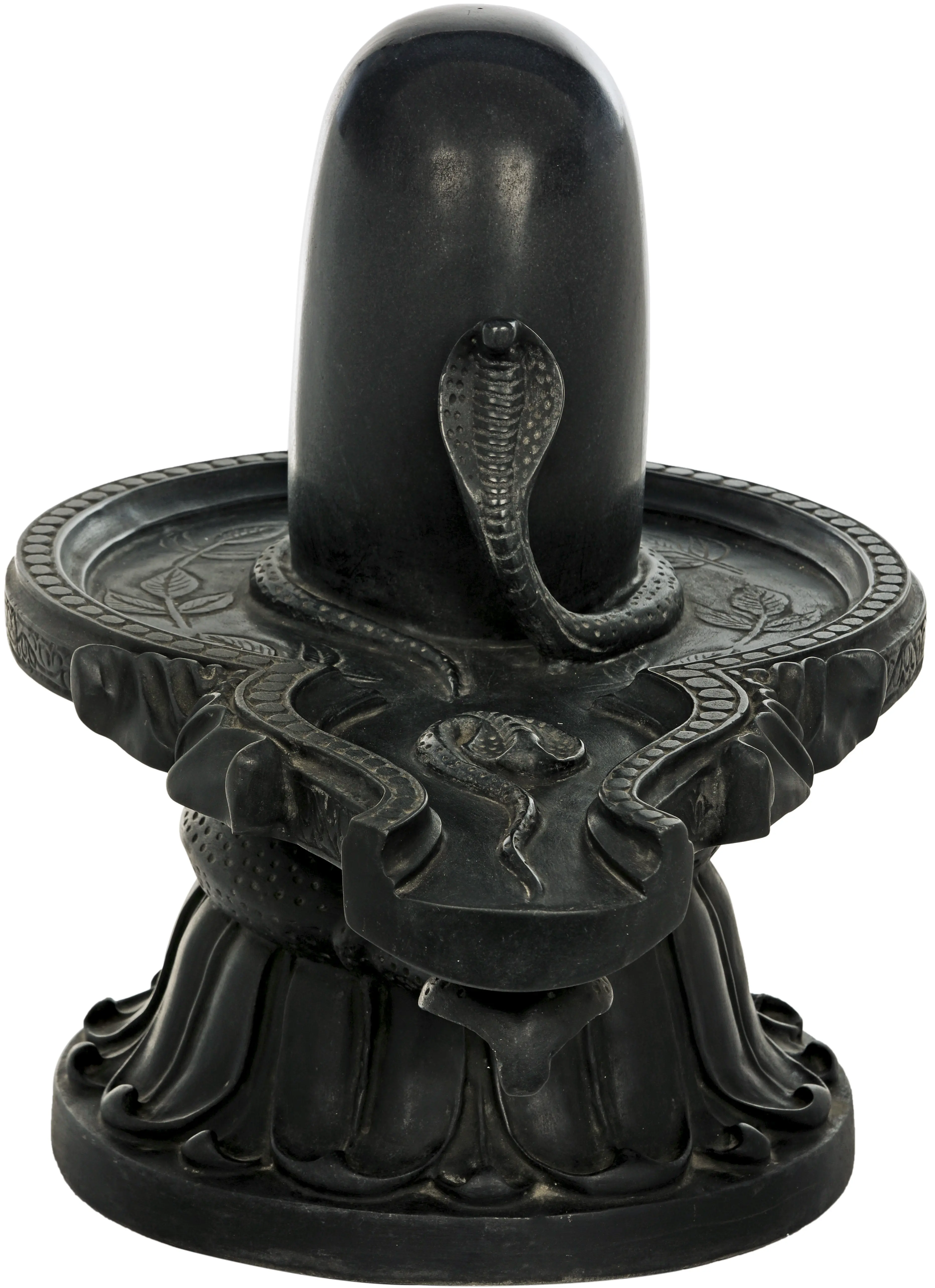 The striking black stone, meticulously carved, imbues this Lingam with a profound sense of gravity and spirituality. The detailed representation of the Naga, the sacred serpent, coiled around the base and rising to protect the Lingam, is deeply symbolic. In Hindu mythology, the serpent, particularly the King Cobra, is closely associated with Lord Shiva. It adorns his neck, symbolizing his mastery over the ego and the primal energies of creation and destruction. The Naga's presence here signifies divine protection, power, and the cyclical nature of life, death, and rebirth that Shiva embodies.