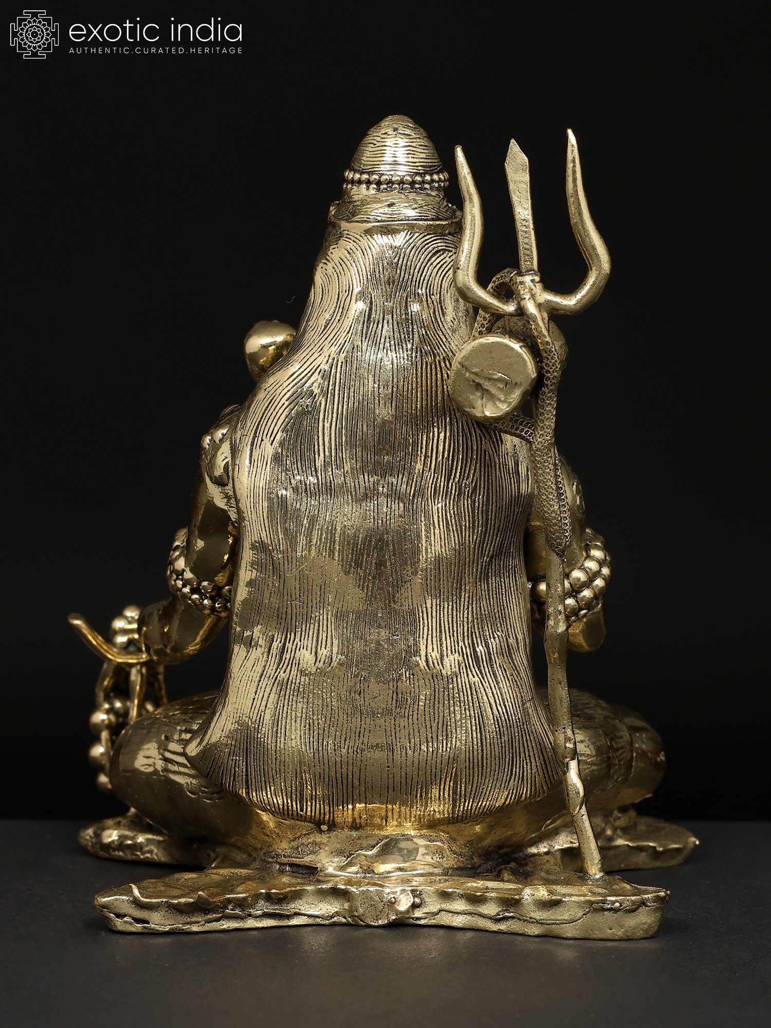 13" Brass Blessing Shiva Seated on Tiger Skin