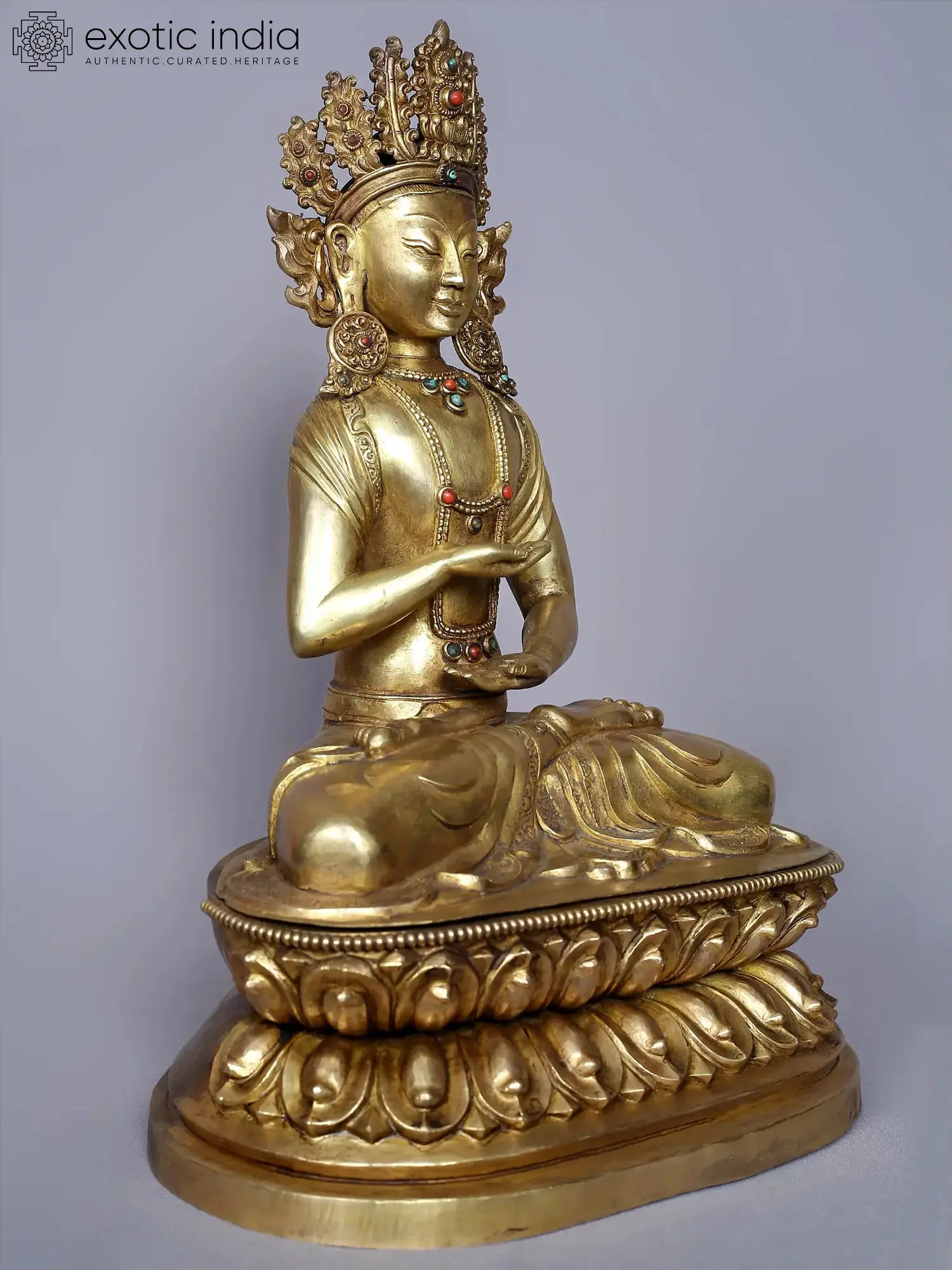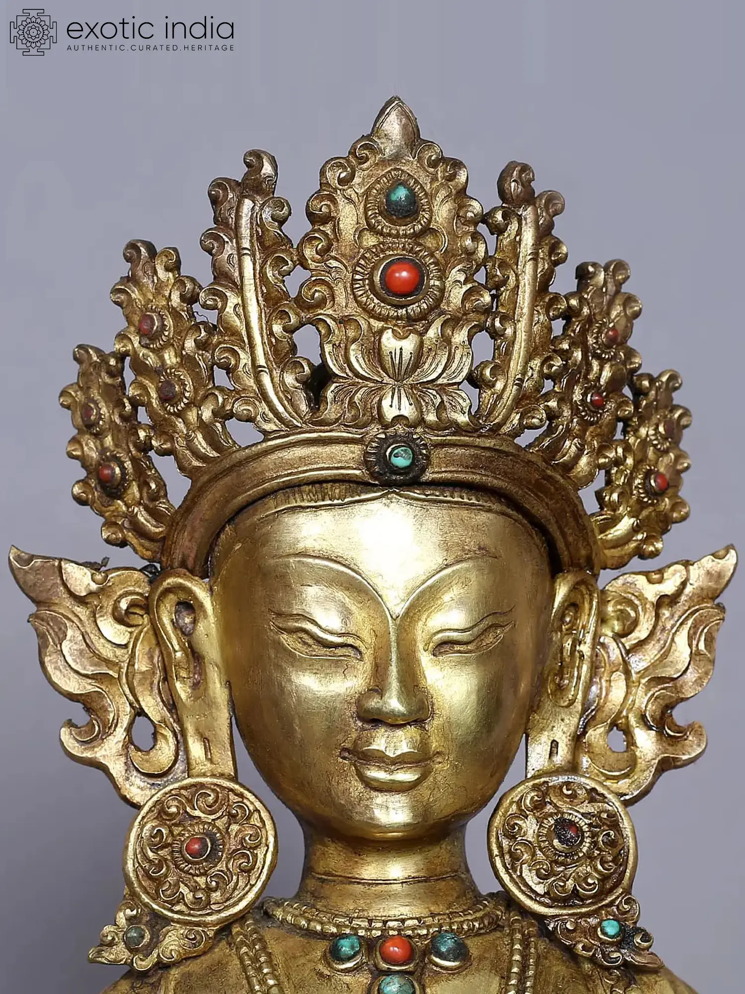 In the East Asian culture of the Mahayana sect of Buddhism, Kshitigarbha is the Bodhisattva who looks after the Six Realms of Rebirth, which are six separate worlds where different beings reside. Kshitigarbha is often seen as the Buddhist equivalent of Yama, who controls different life forms according to their deeds. This Nepalese statue of Kshitigarbha presents the Bodhisattva in Chinese idiom, visible in his facial features and ornamentation. Carrying the loveliness of youth, Kshitigarbha emanates a divine serenity.