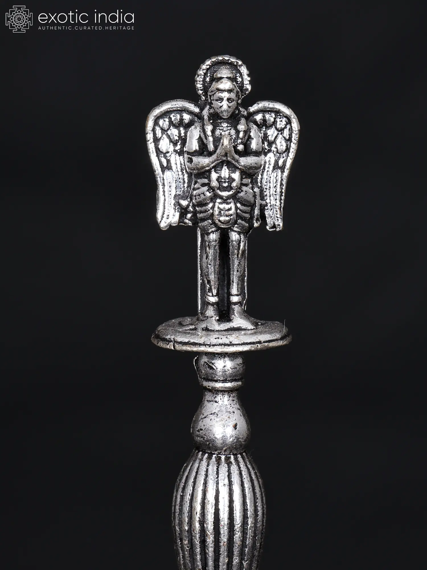 Designed in a very unique way and multiple different layers of motifs, the bell has a curved handle and the body is beautifully ornamented with decorative vines. On top of the bell, Lord Garuda stands promising protection and peace in a namaste stance.