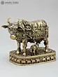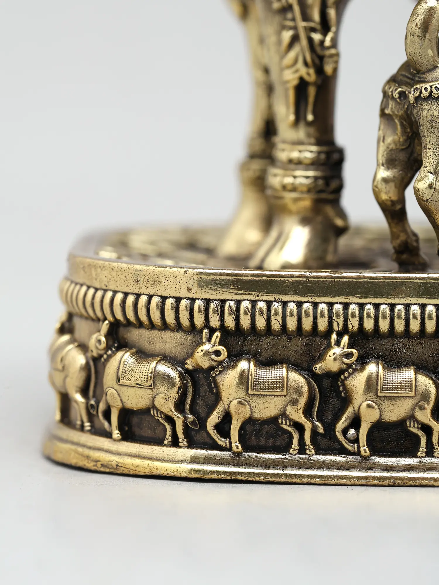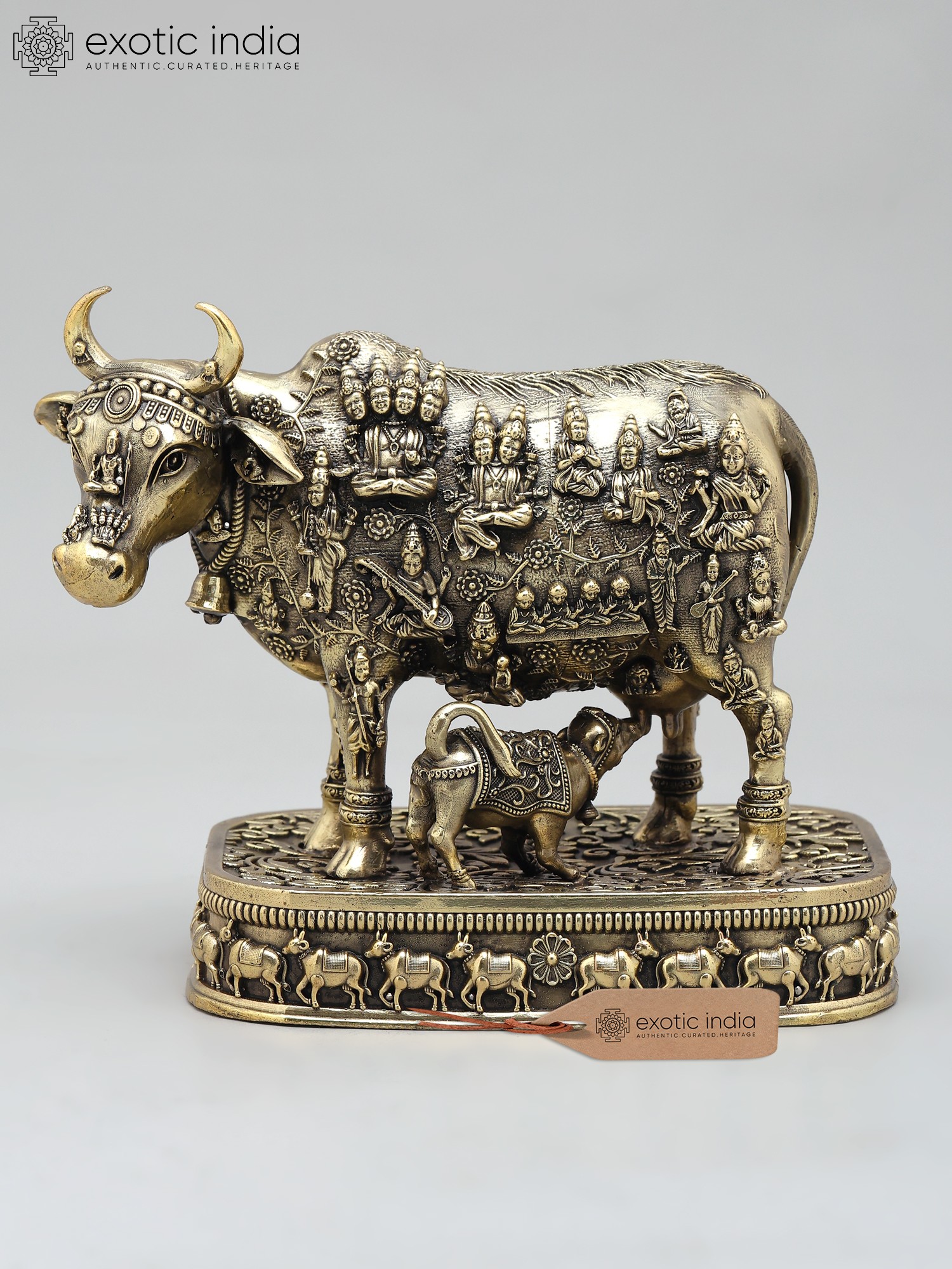 7" Small Pair of Kamadhenu Cow Idol | Brass Statue for Wall Decor