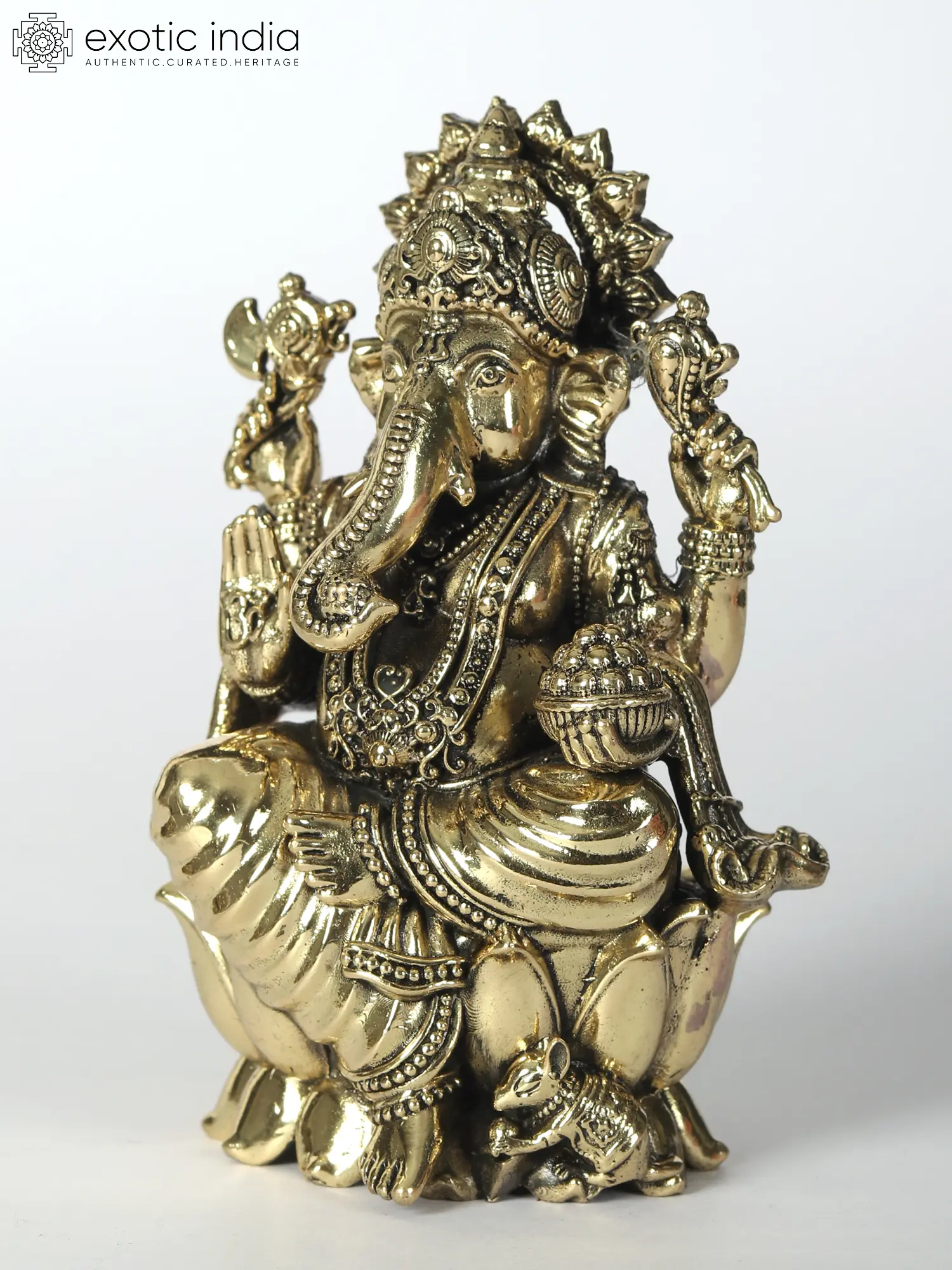 A perfect icon of the embodiment of perfection- Lord Ganesha, this brass statue is an ideal image for worshipping and receiving the blessings of the god.
