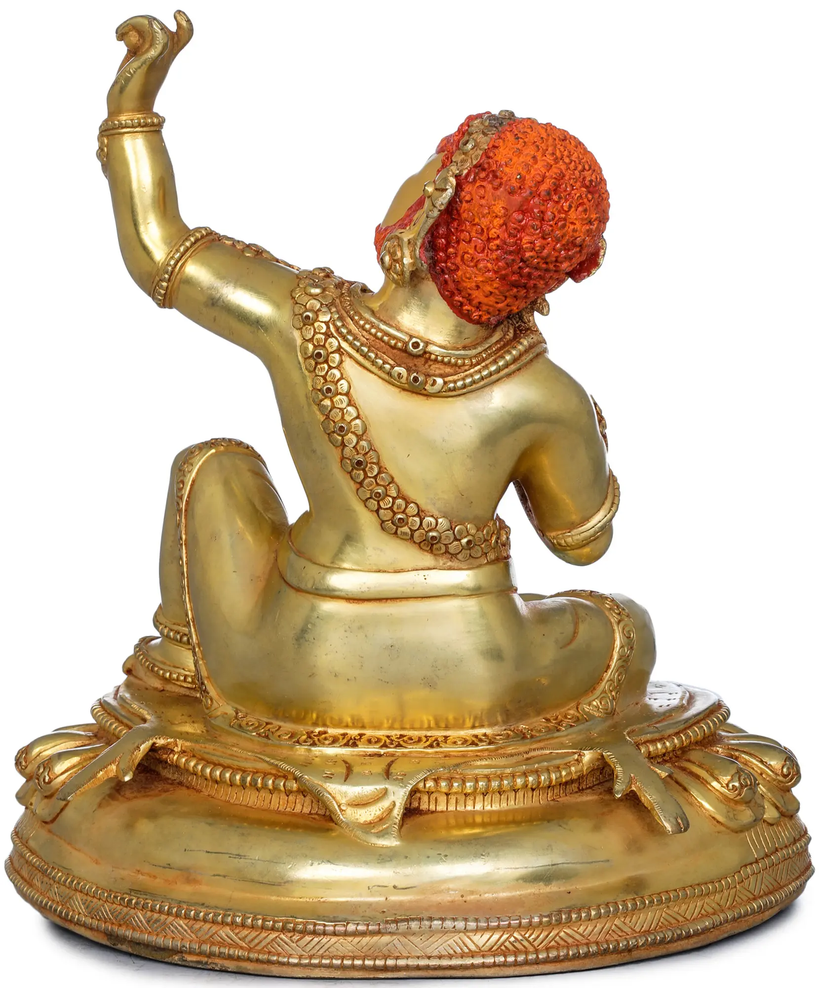 Now comes the most important part of Nepalese art which is gold gilding. This is done by the traditional fire gilding method. A mixture of mercury and 18K gold is applied on the surface of the statue and heat is applied using a flame torch. The result is that mercury evaporates along with impurities, leaving a pure 24K gold finish.