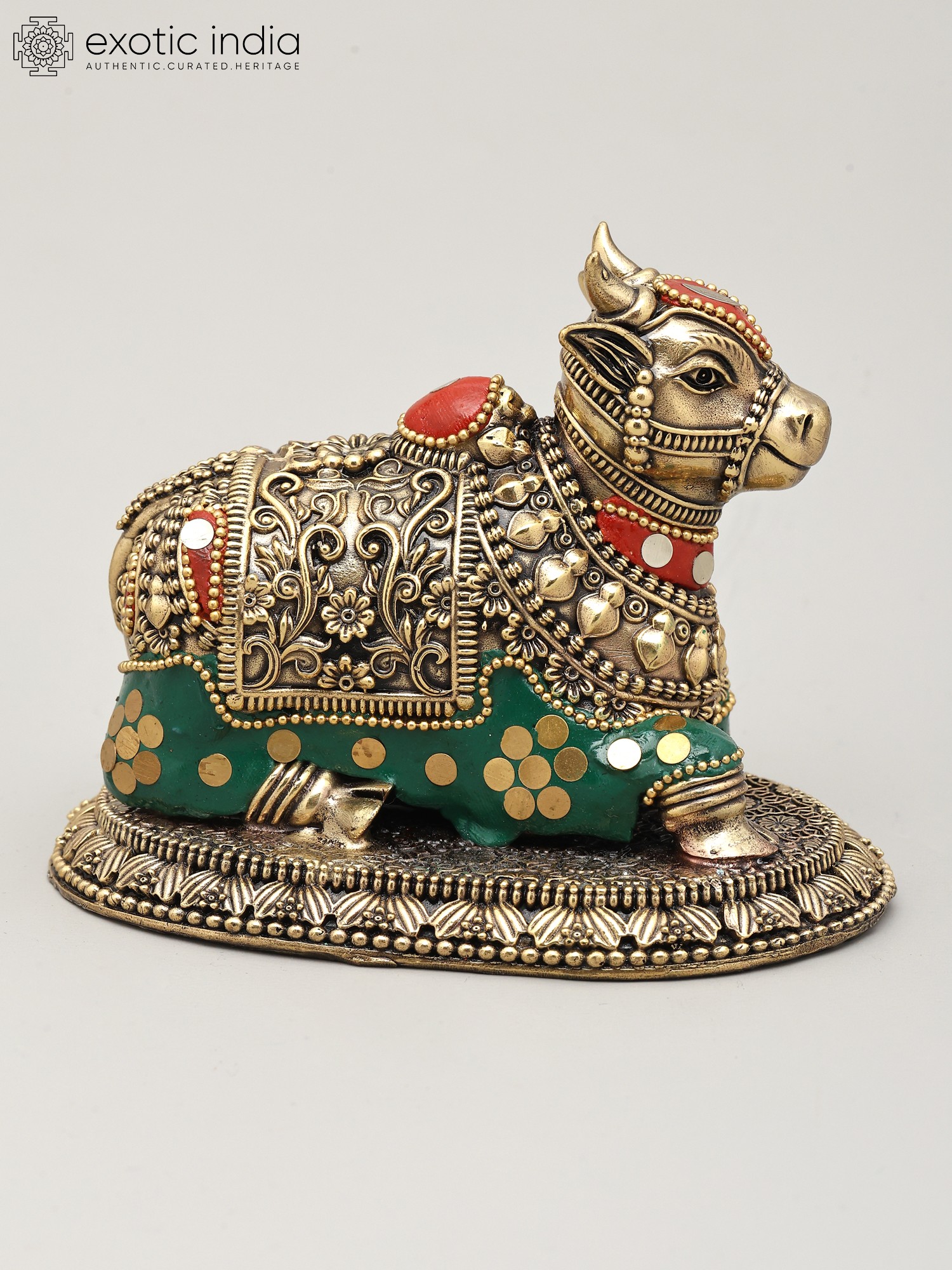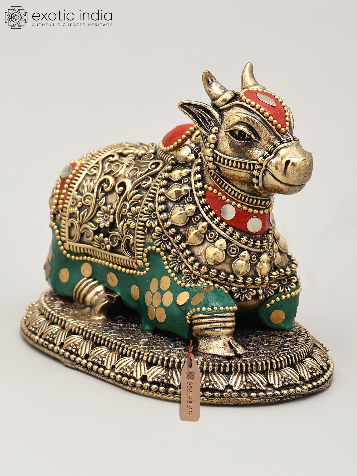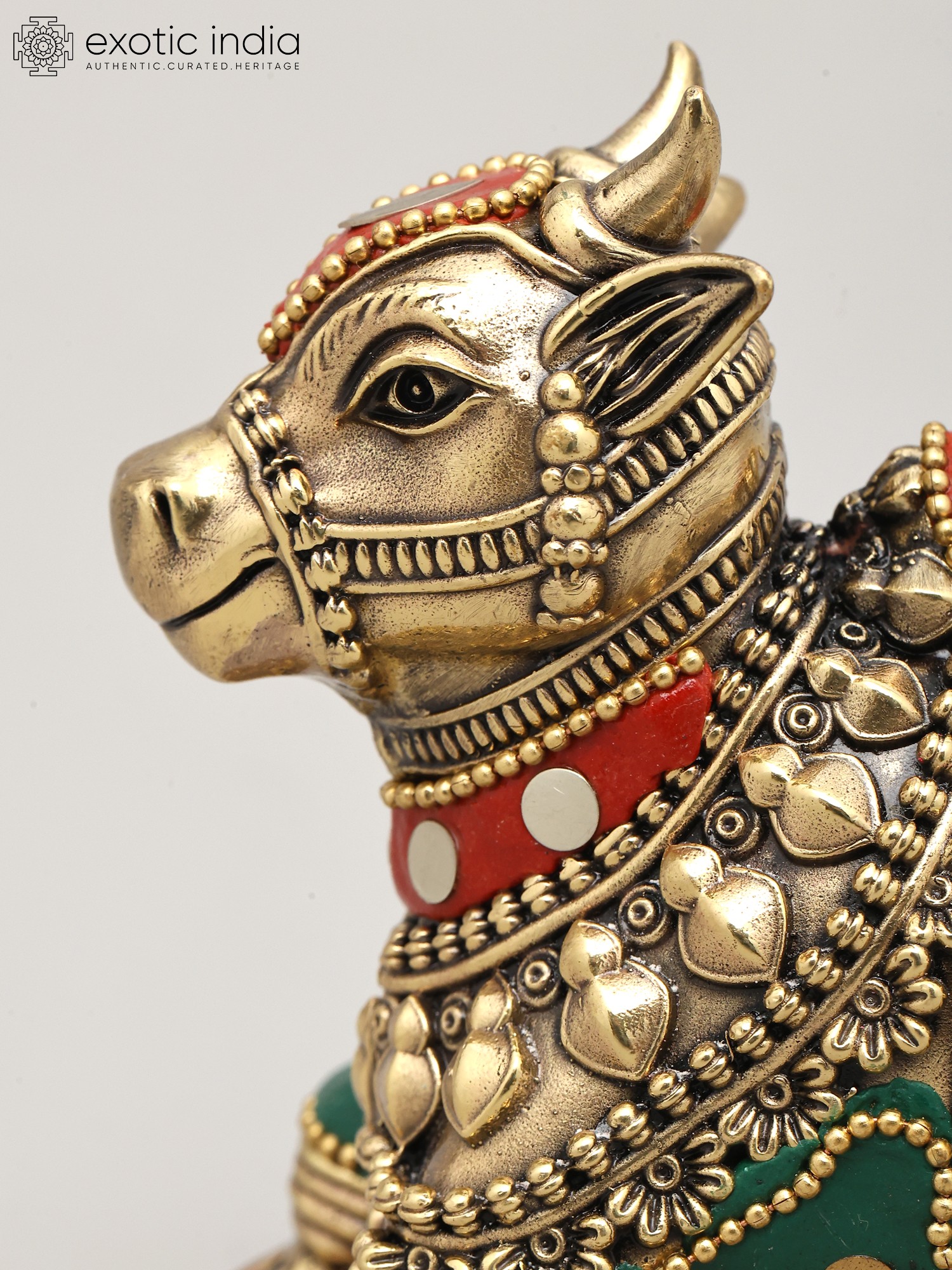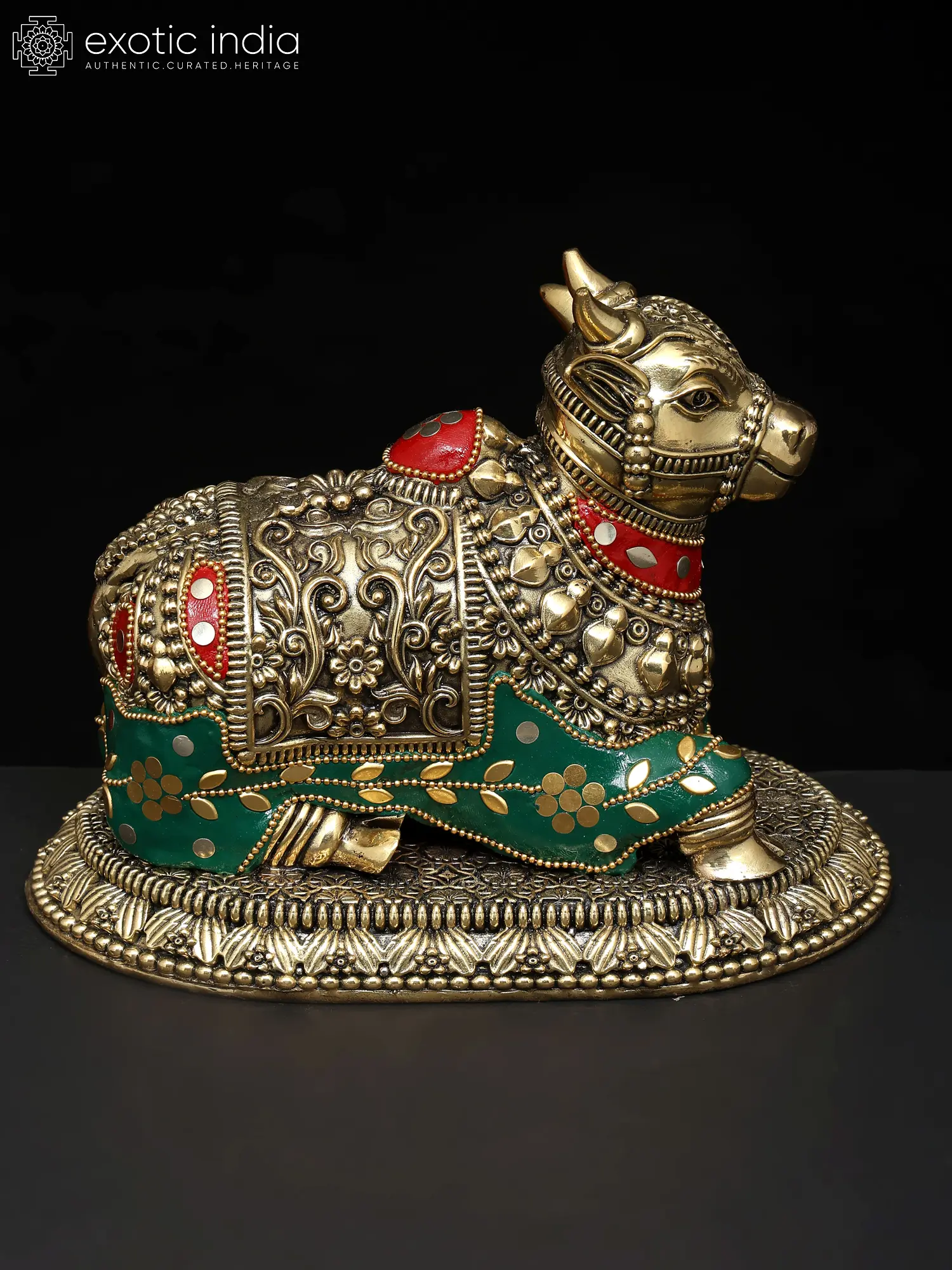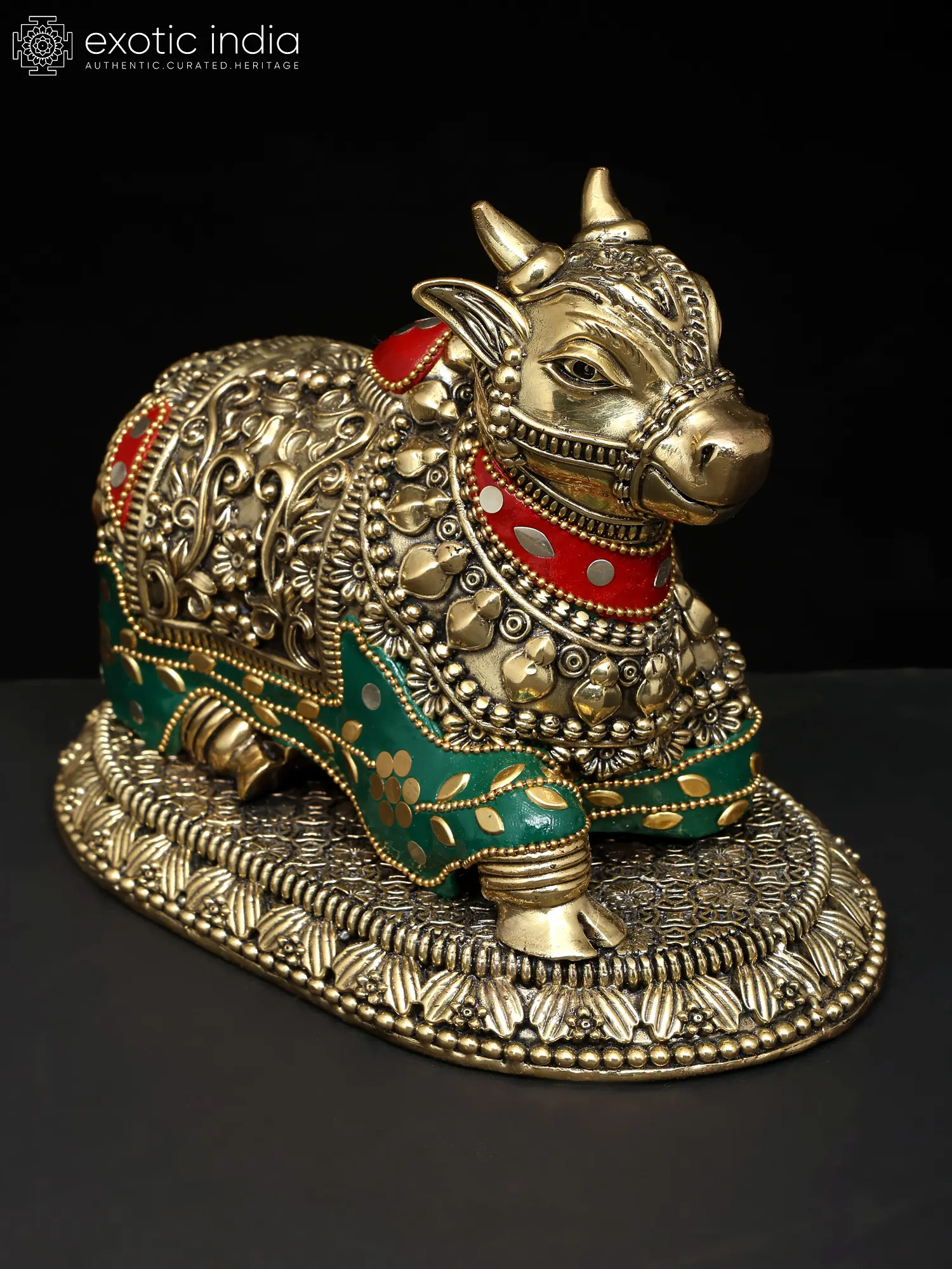 8" Lord Shiva and Parvati with Nandi | Handmade Brass Idols | Made in India