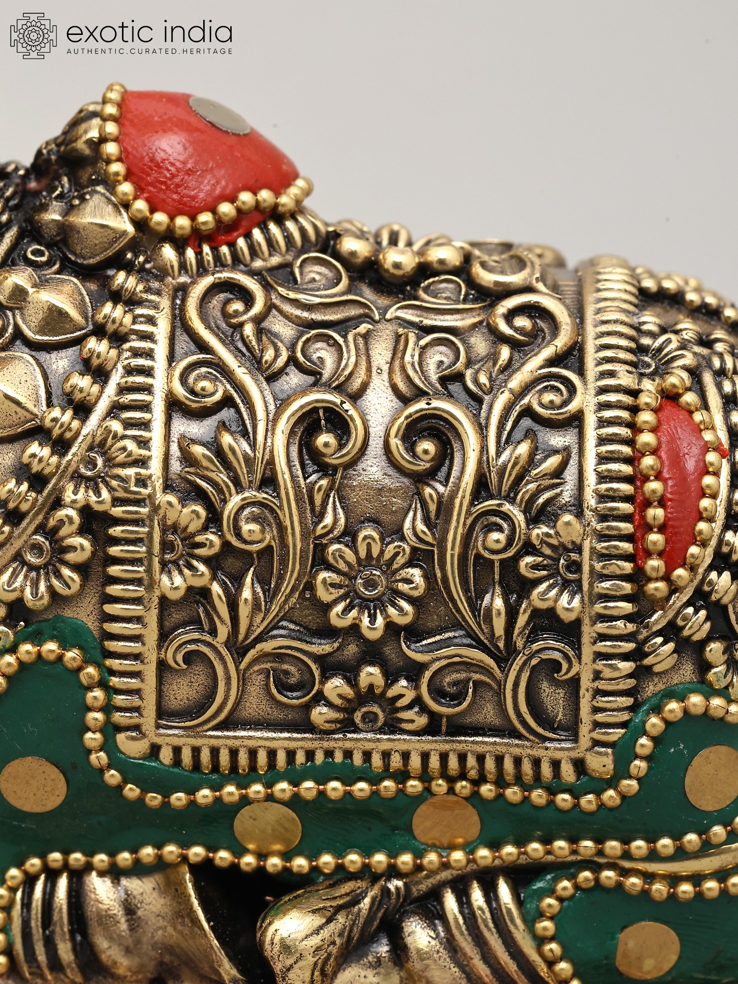 4" Small Blessing Lord Ganesha | Brass Statue with Inlay Work