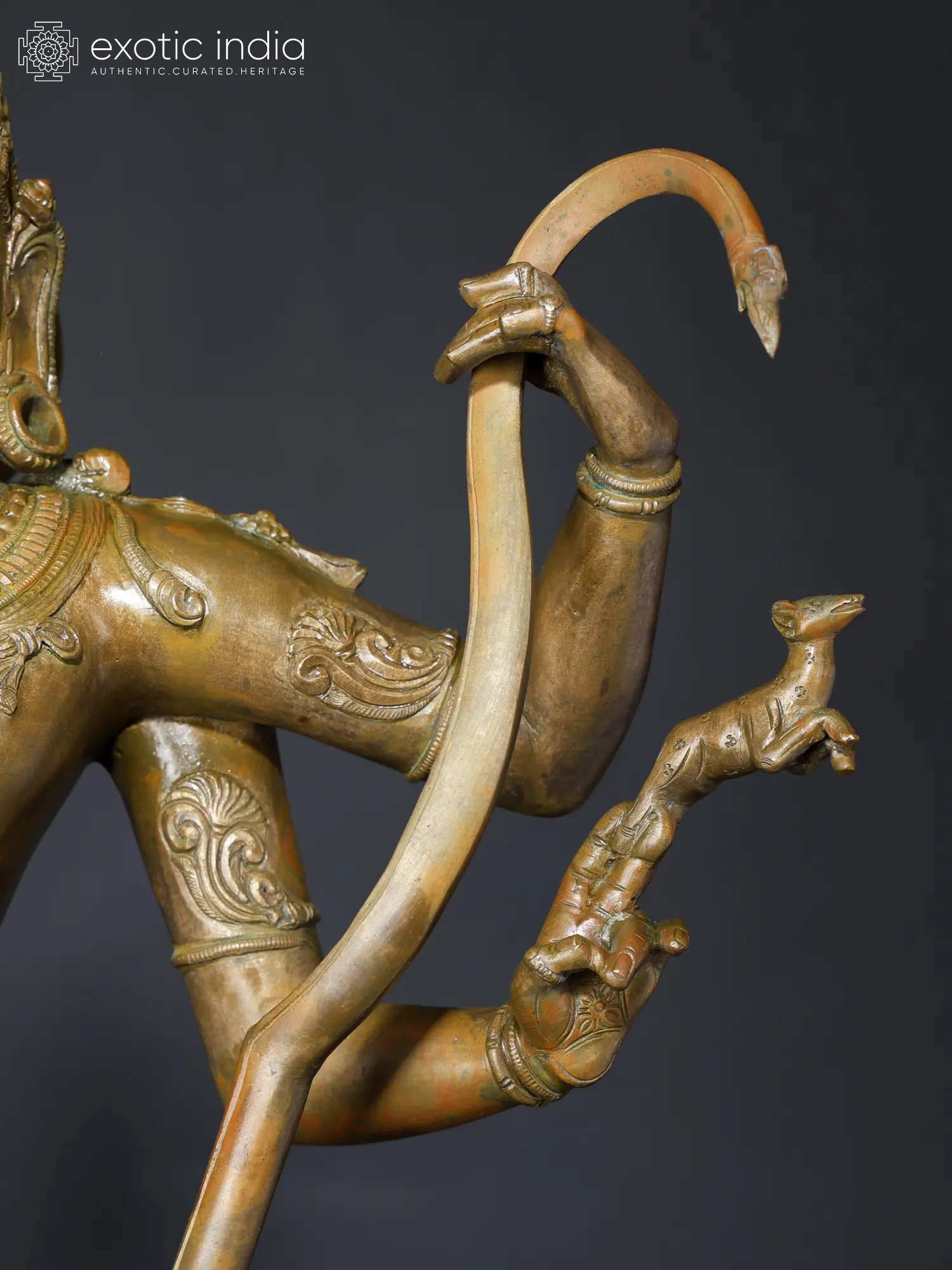 The graceful position of Shiva’s primary hands is such, that it reminds one of the beautiful Veenadhara Shiva (Shiva playing the Veena) bronzes. It is no surprise to see that the primordial god wields the two cosmic weapons with equal ease, as he does the melodious Veena, a masterful symbol of Shiva’s sublime, equanimous presence in creation and dissolution.