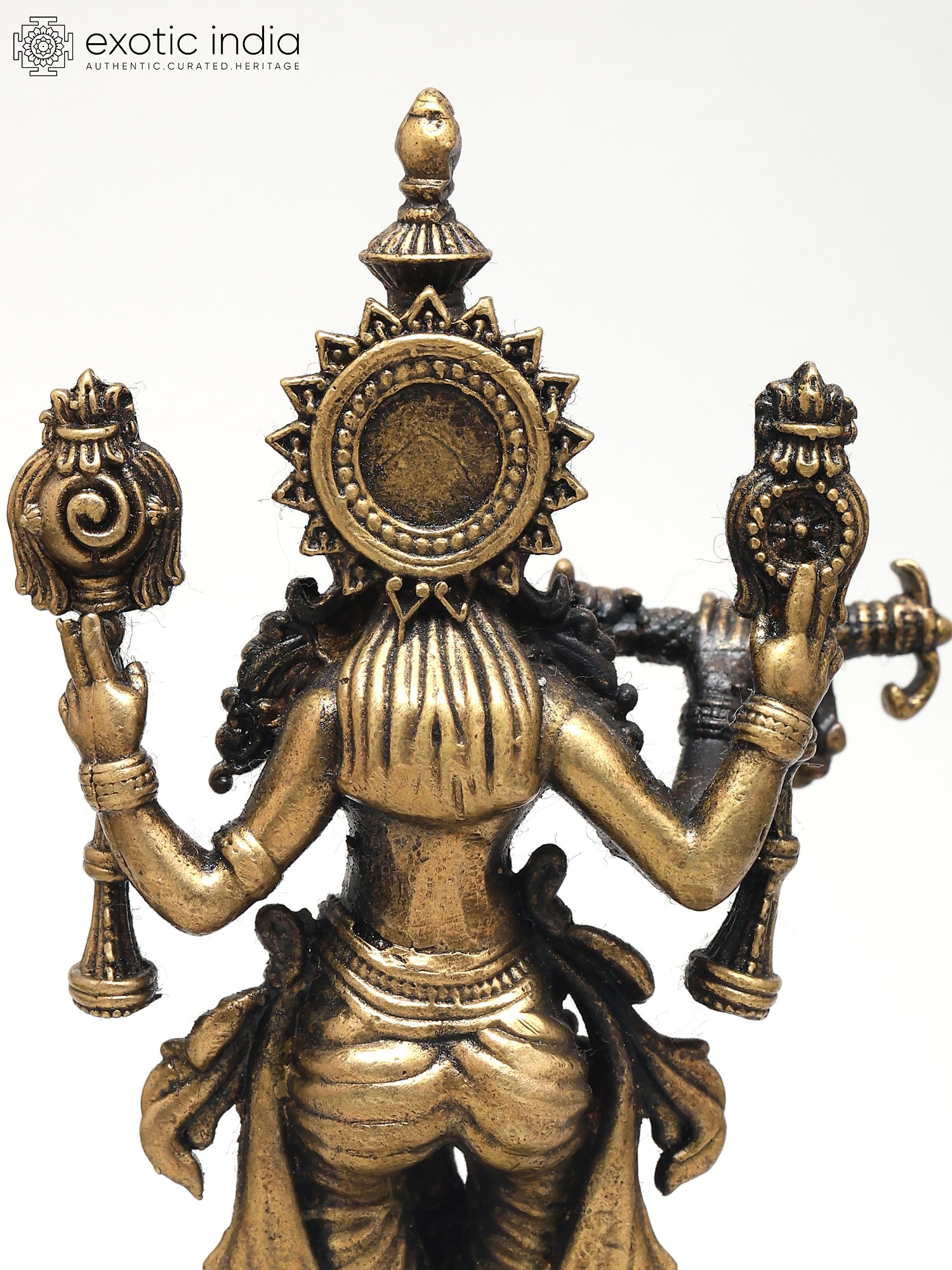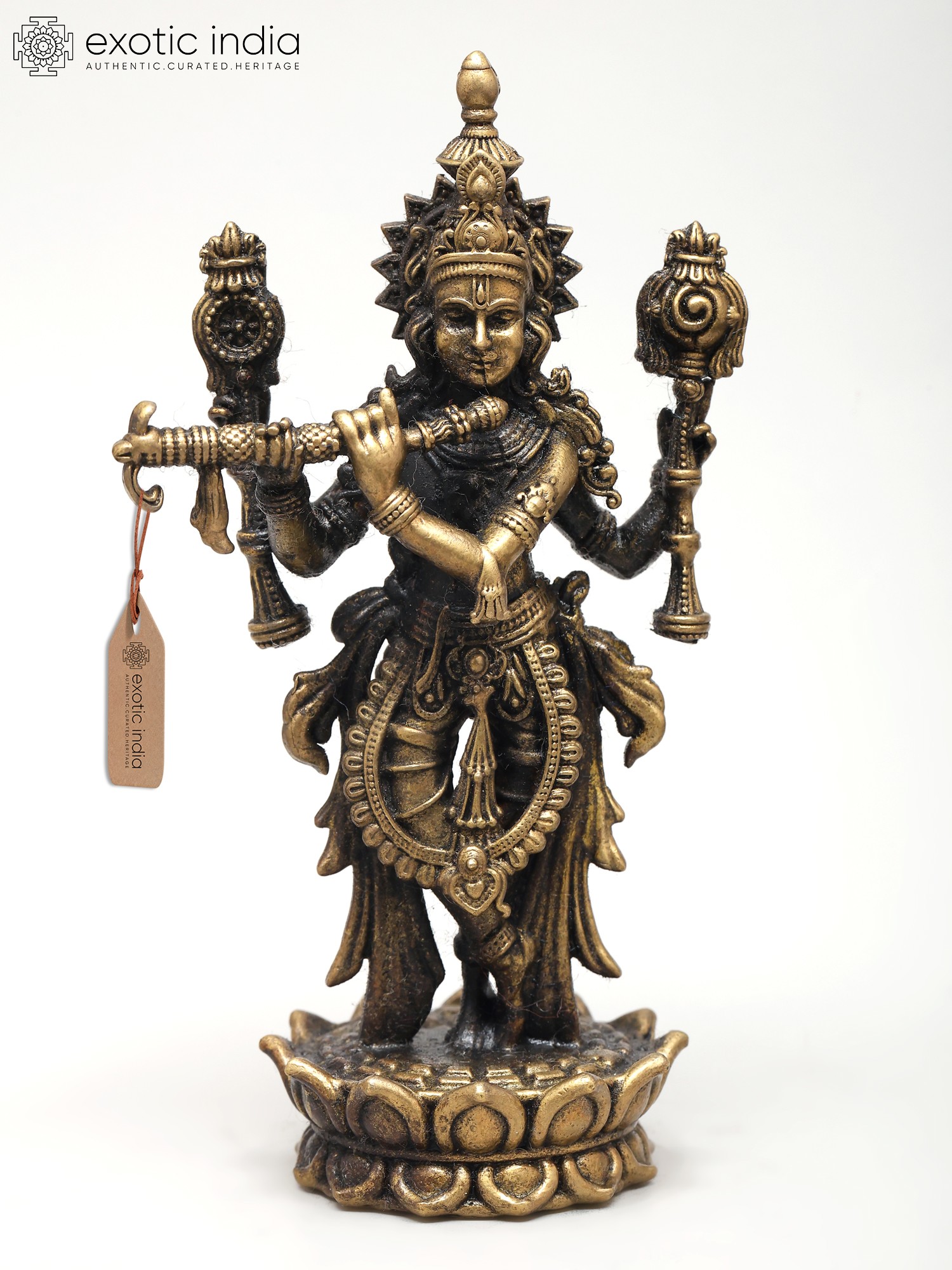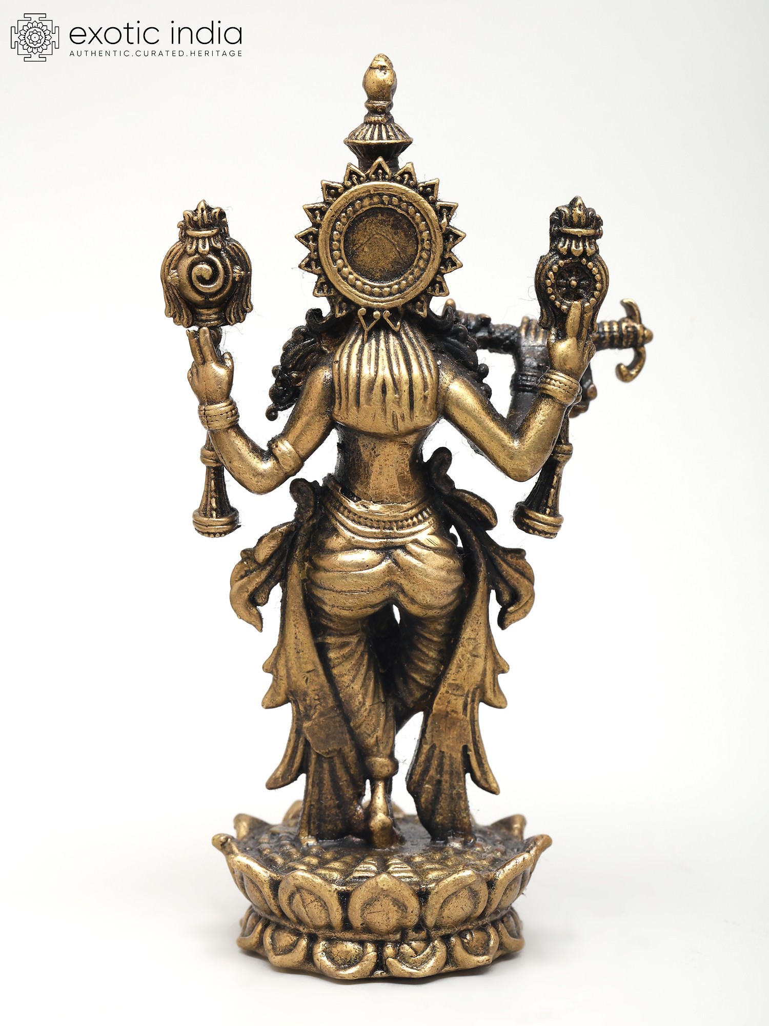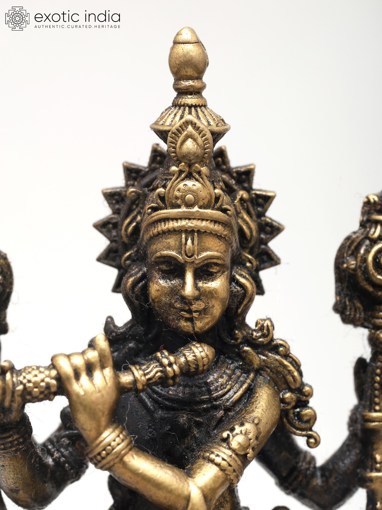 4" Small Brass Lord Krishna Playing Flute with Cow
