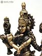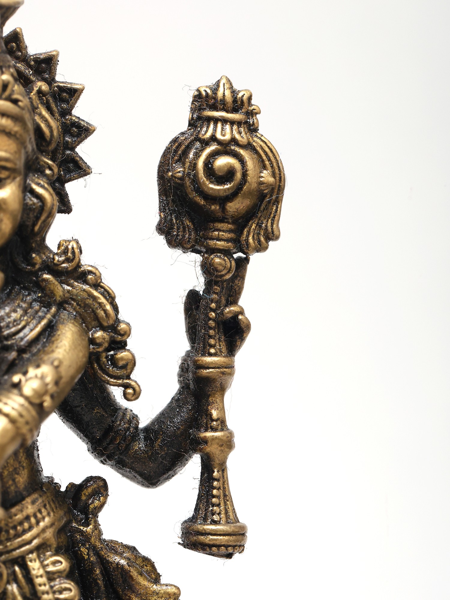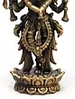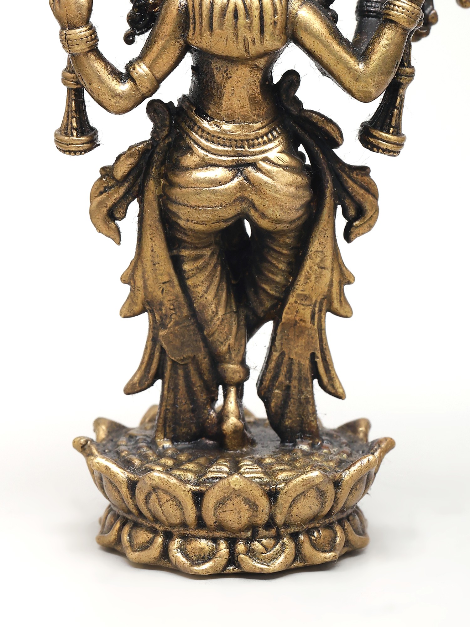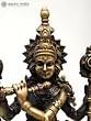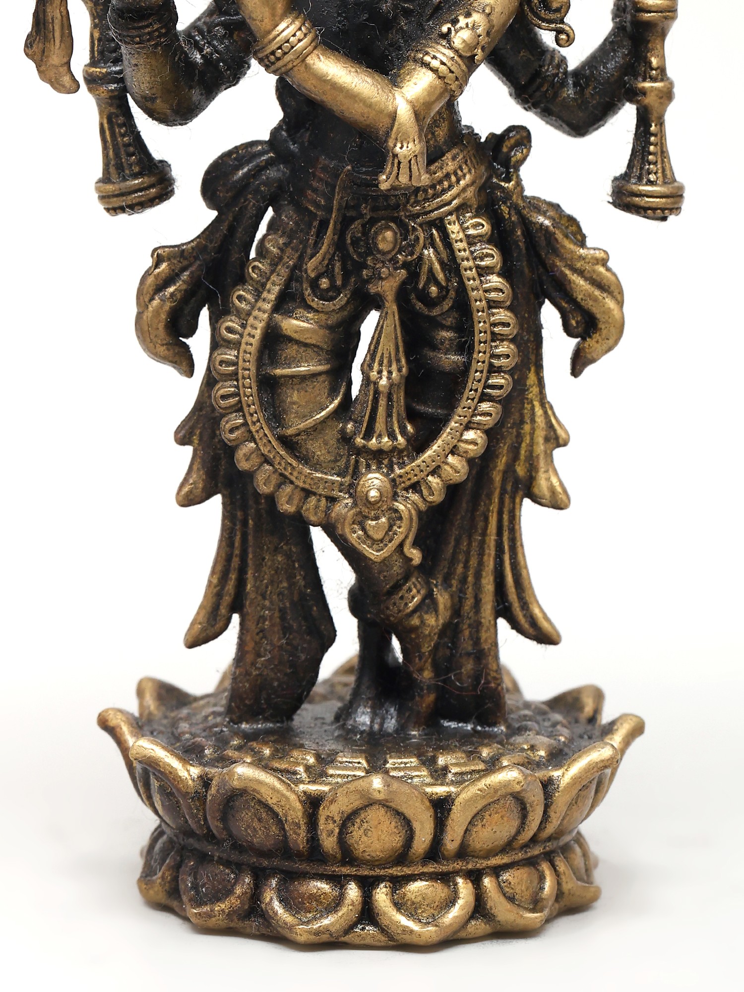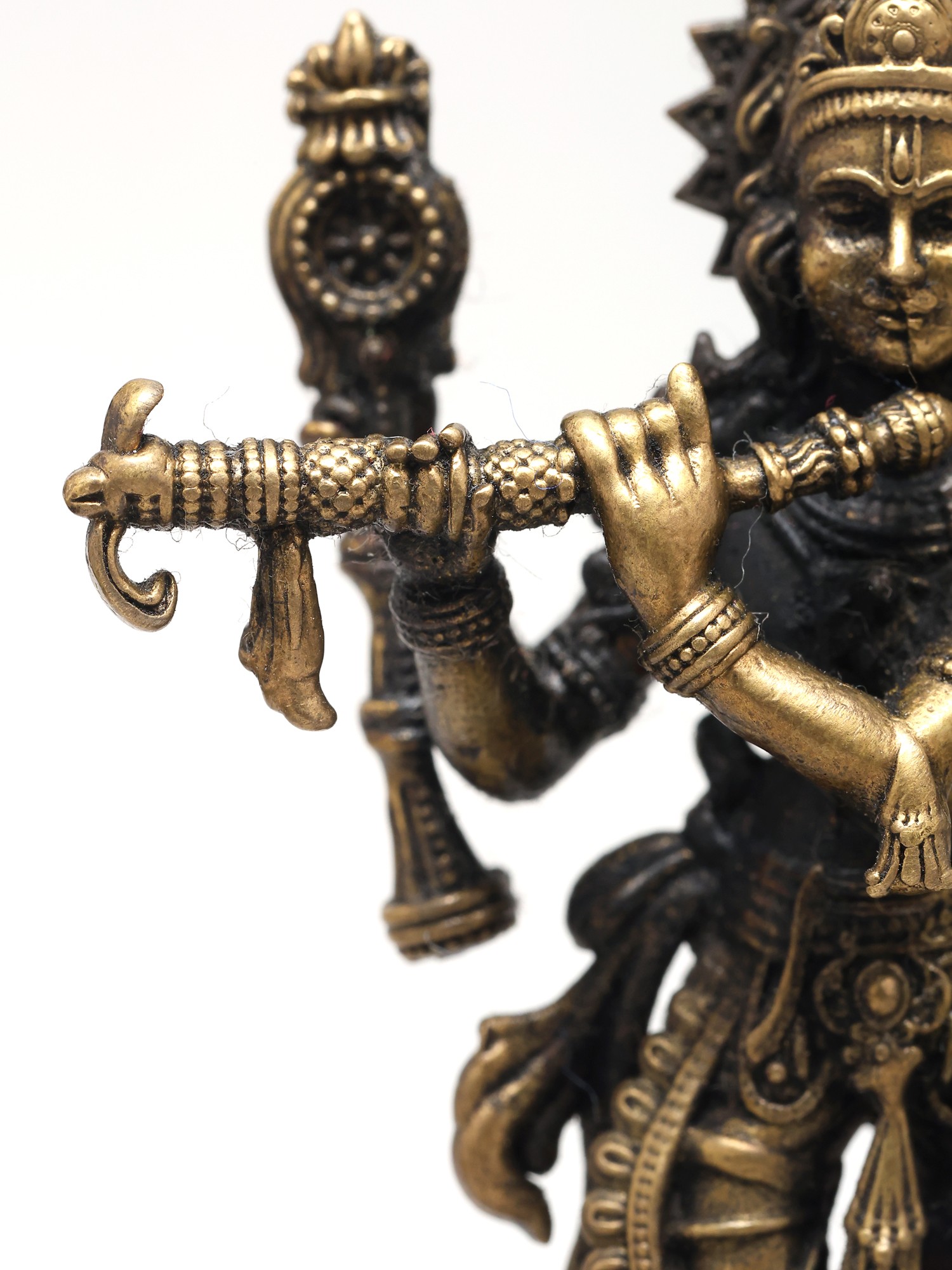 4" Small Brass Lord Krishna Playing Flute with Cow