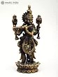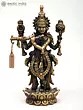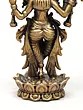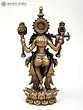 47" Large Four Armed Blessing Goddess Lakshmi Seated on Kirtimukha Throne with Elephant on Three Legged Pedestal | Brass Statue with Inlay Work