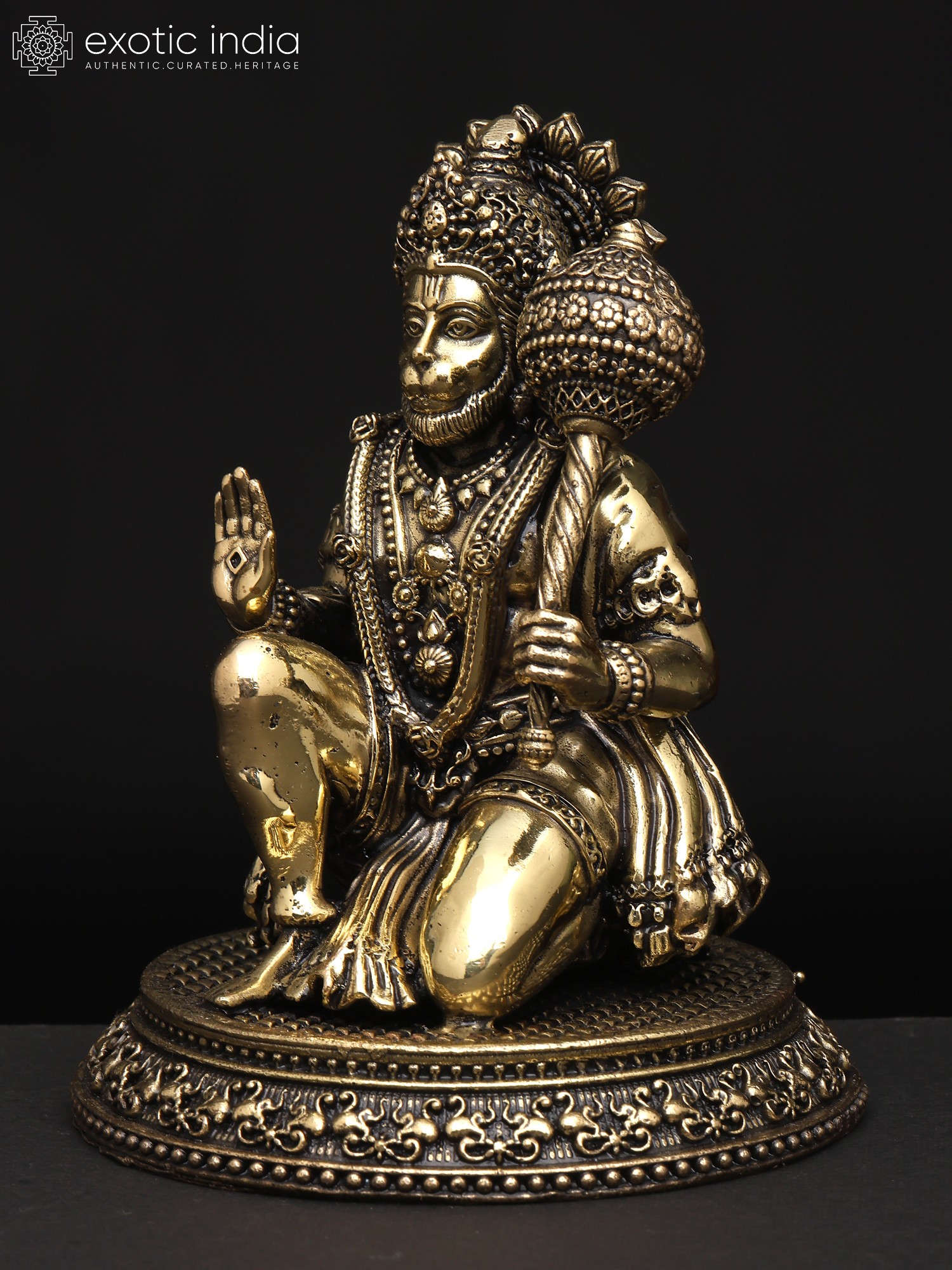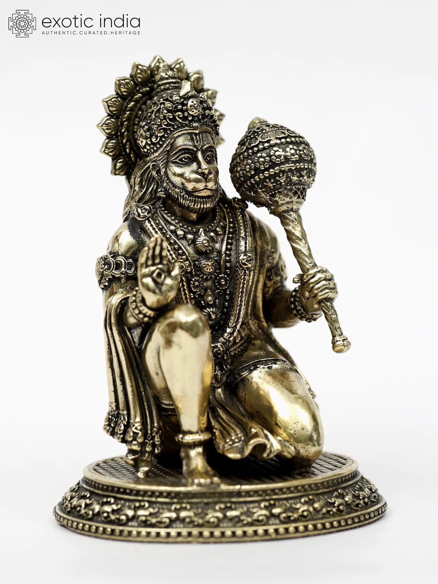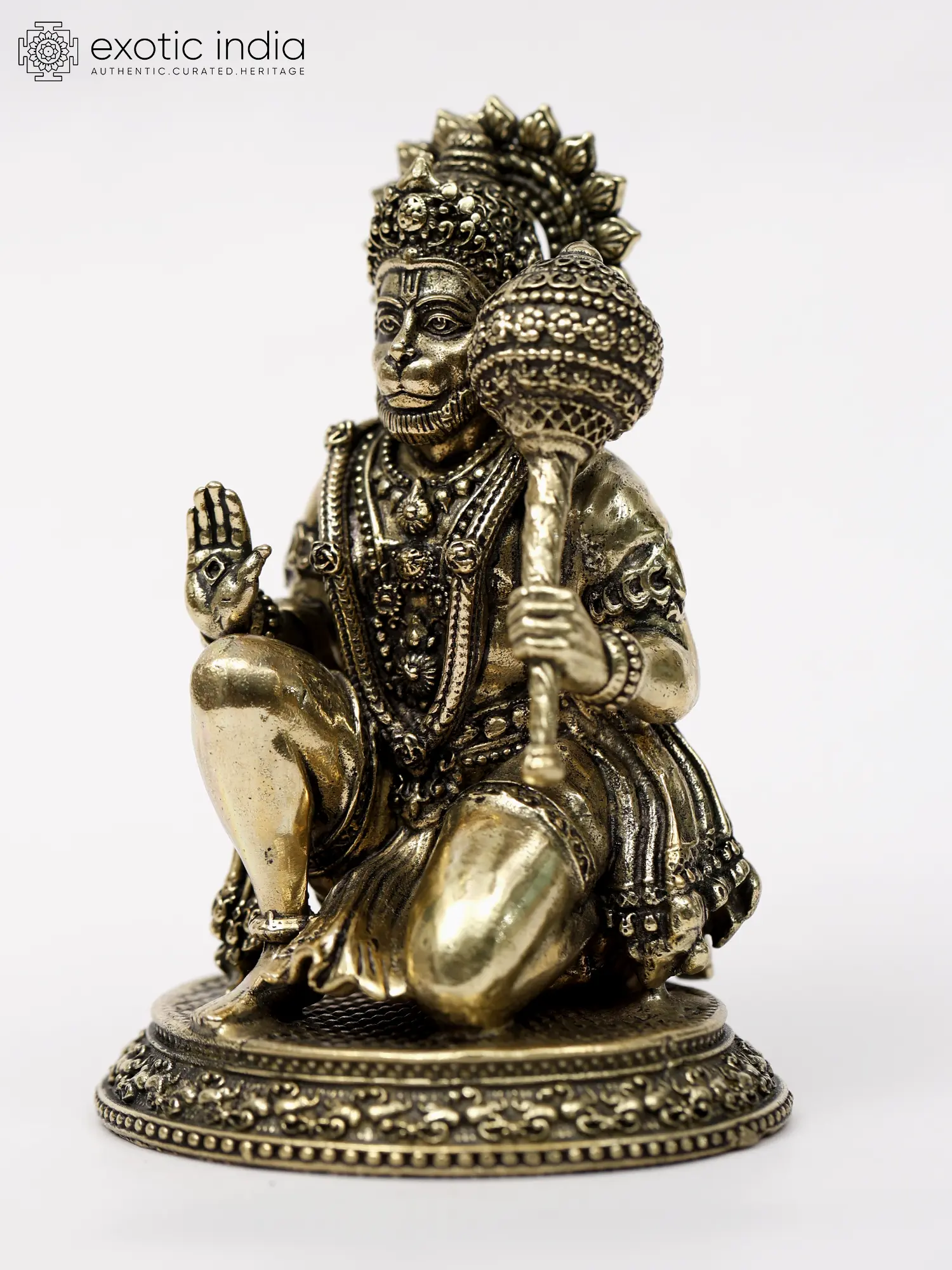 “Mangala-Murti”- the image of auspiciousness, Lord Hanuman appears in this superfine brass statue in a benevolent and powerful aspect.