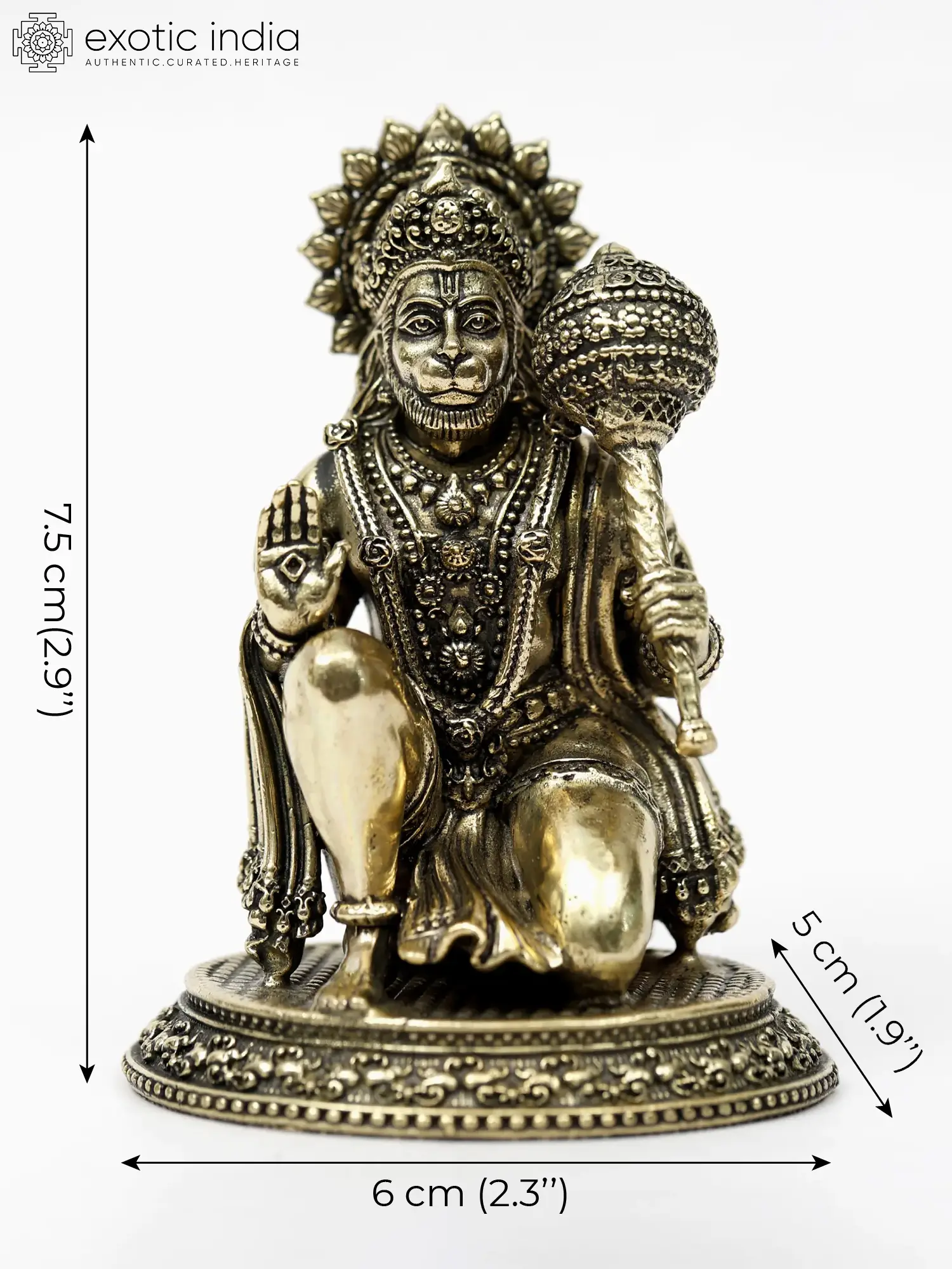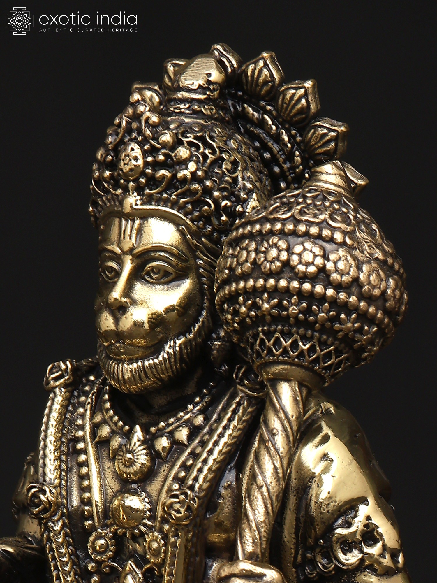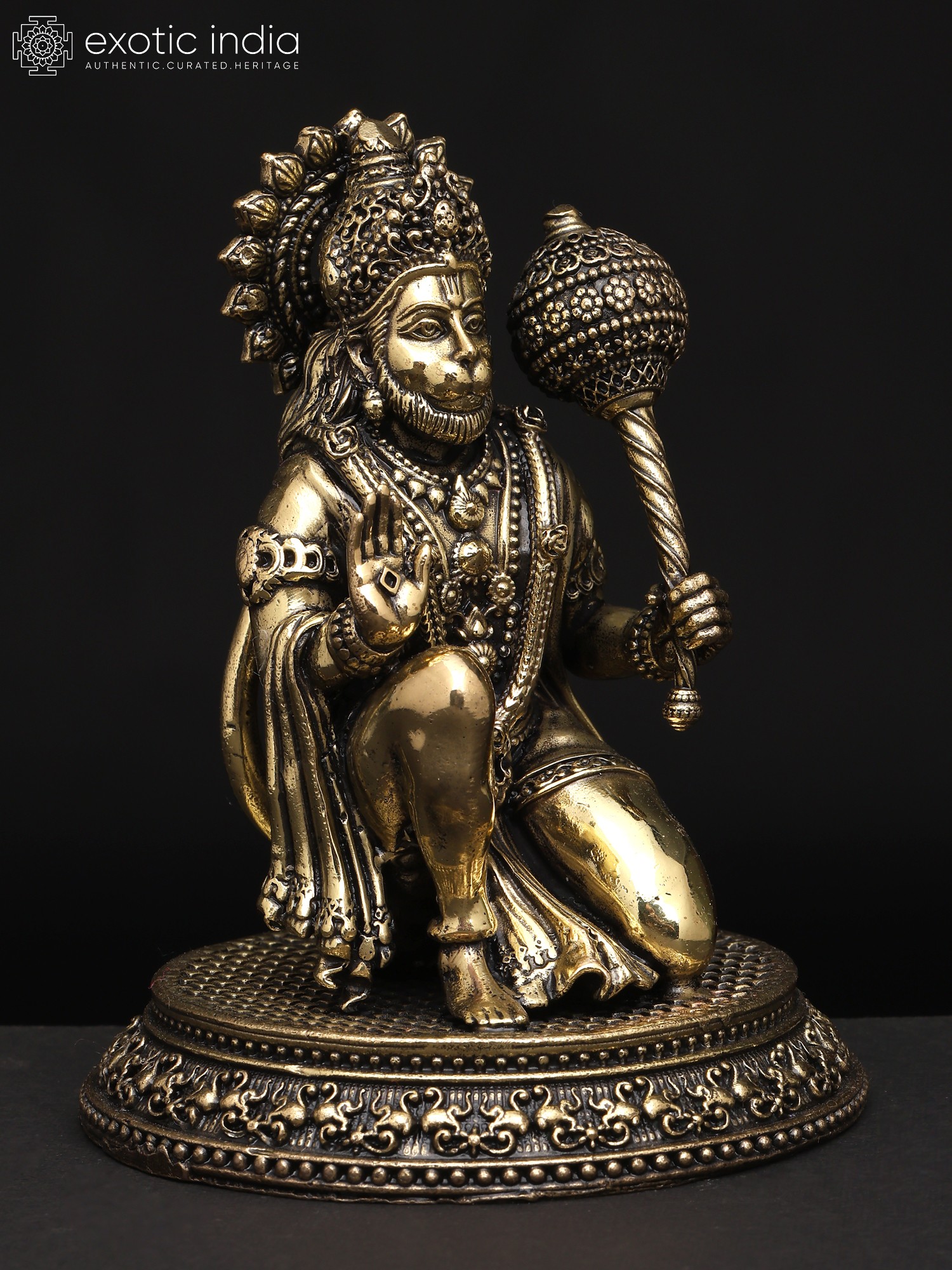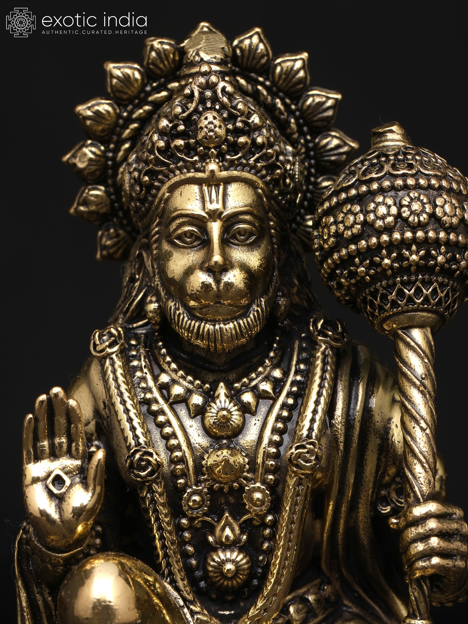 “Mangala-Murti”- the image of auspiciousness, Lord Hanuman appears in this superfine brass statue in a benevolent and powerful aspect.