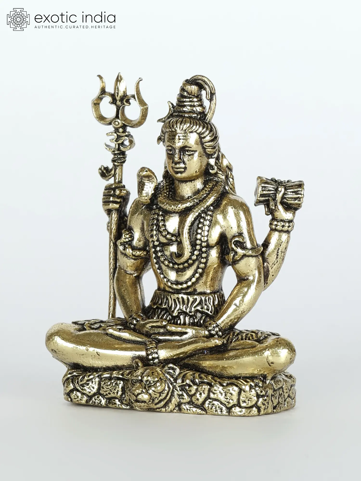 Superfine Sitting Lord Shiva Brass Statue portrays the divine deity in his
