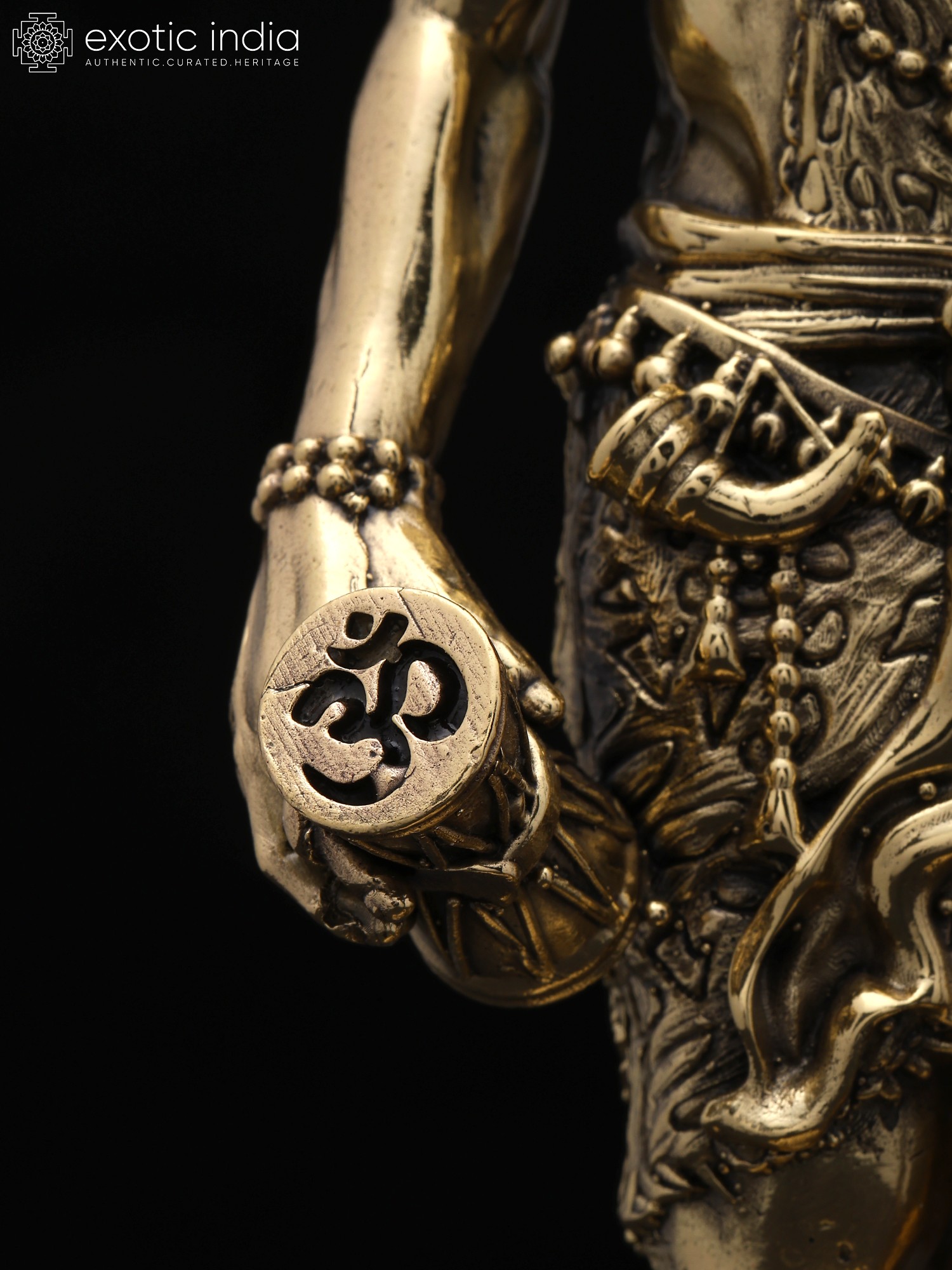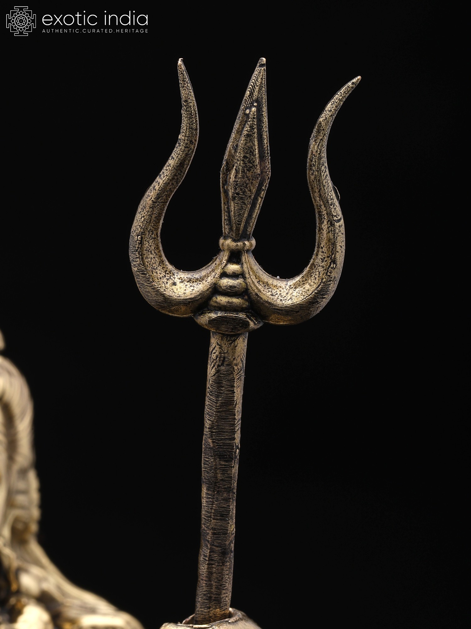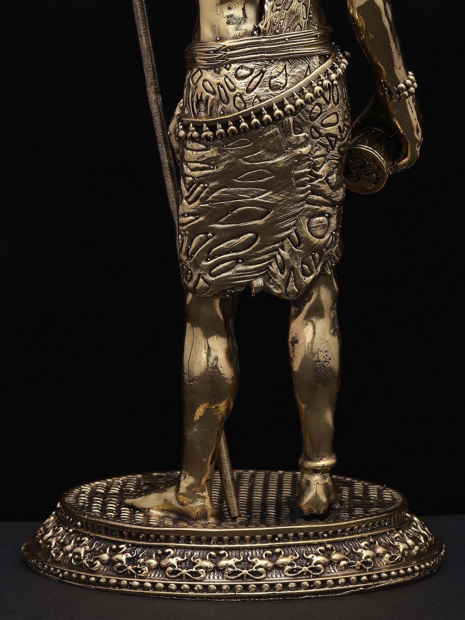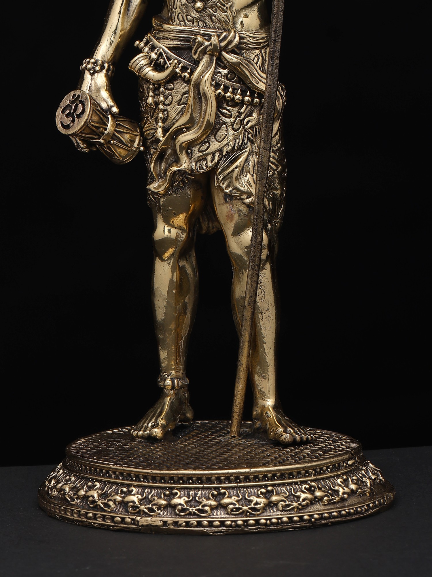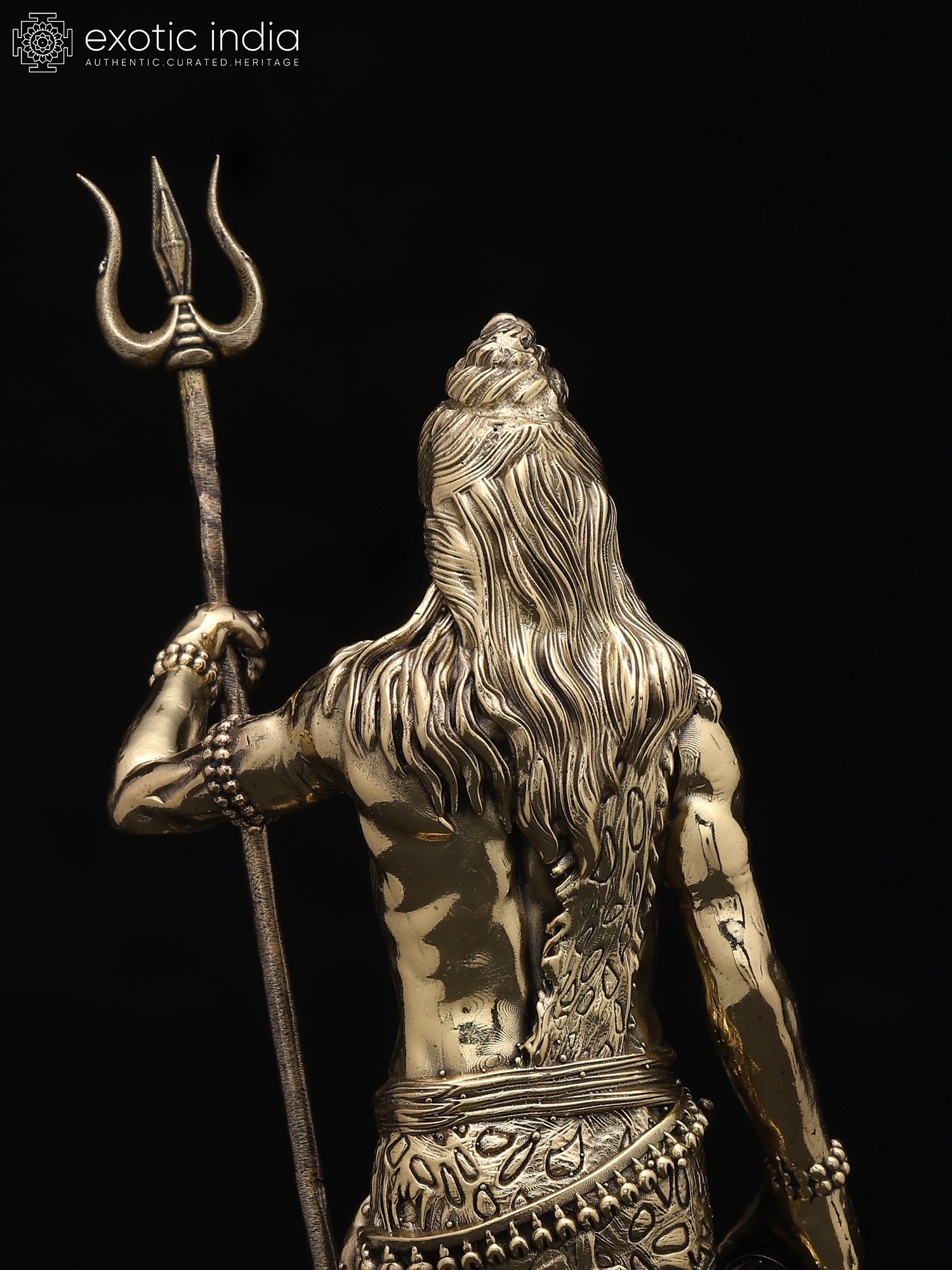 This exquisite 11-inch brass statue of Lord Shiva is a testament to the artistry and spiritual depth of Hindu iconography. Crafted with meticulous detail, this standing figure captures the essence of the Destroyer, one of the principal deities of Hinduism, representing transformation and cyclical renewal. Shiva, often depicted as a yogi, is a complex god, embodying both destructive and benevolent powers. He is the lord of both asceticism and abundance, representing the constant interplay of creation and destruction in the universe. This statue is more than just a decorative piece; it is a gateway to understanding a pivotal figure in one of the world's oldest living religions. The rich golden hue of the brass enhances the statue's inherent majesty, reflecting the light and adding a sense of sacredness. His serene yet powerful presence will add a touch of spiritual elegance to any space.