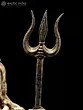 Lord Shiva's iconography is rich in symbolic meaning. In this statue, He holds the Trishul (trident), a powerful weapon symbolizing the three fundamental qualities of time: creation, preservation, and destruction. The Trishul also represents the three aspects of consciousness: the waking state, the dream state, and deep sleep. The Om symbol etched onto the small scroll in his hand is the sacred mantra, the quintessential sound of the universe. It's the source of all creation and a symbol of spiritual awakening. The serpent, often depicted coiled around Shiva’s neck, represents Kundalini, the primordial energy that lies dormant at the base of the spine. Its presence highlights Shiva’s mastery of spiritual and earthly power. The detailed craftsmanship of the statue captures these intricate details, giving insight into the rich symbolism associated with Lord Shiva.