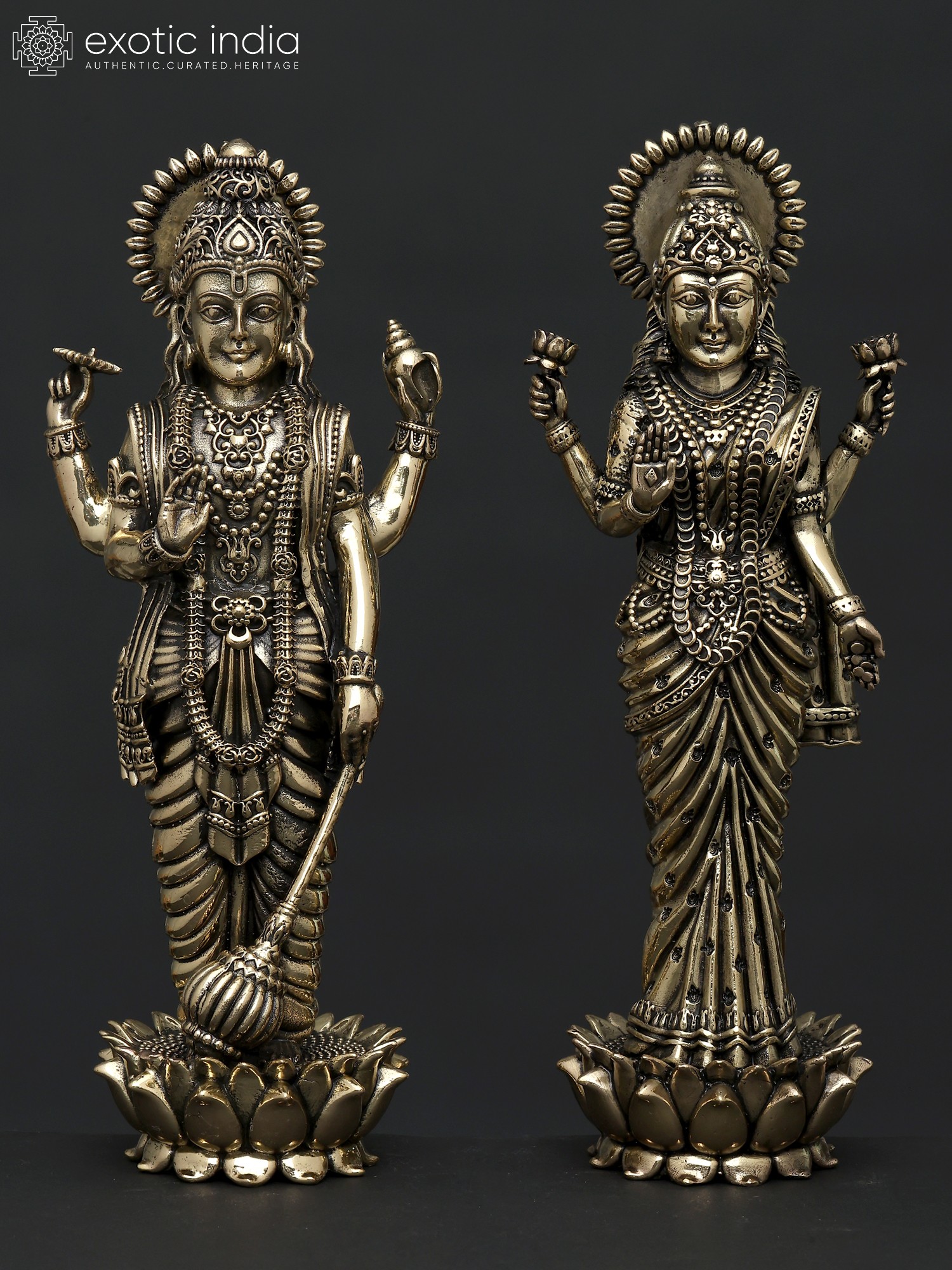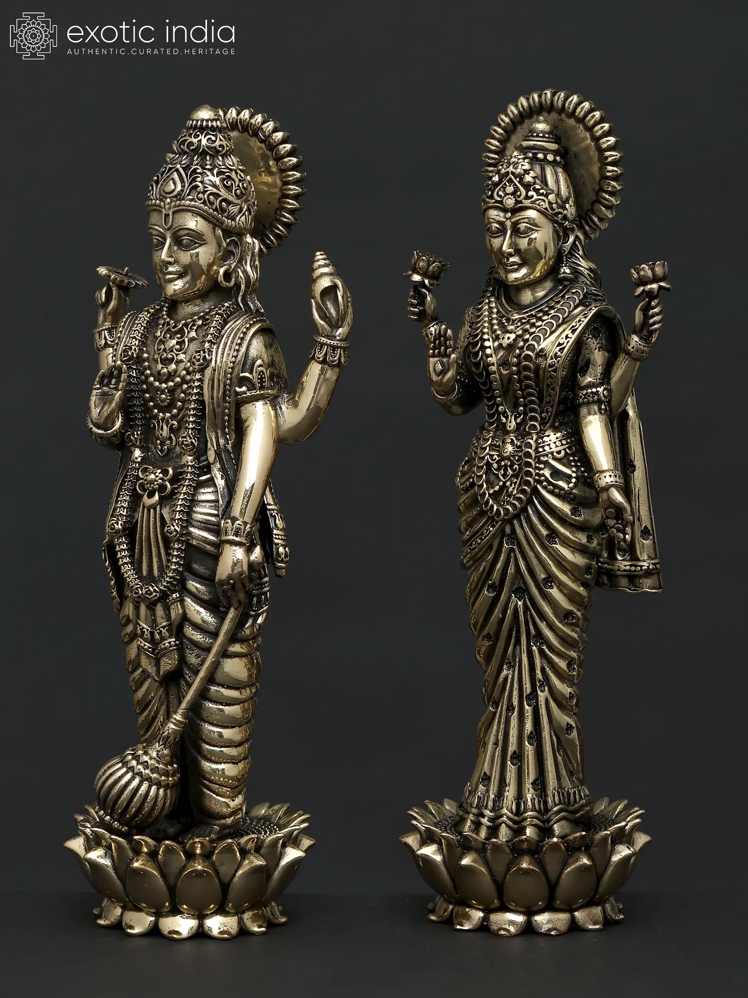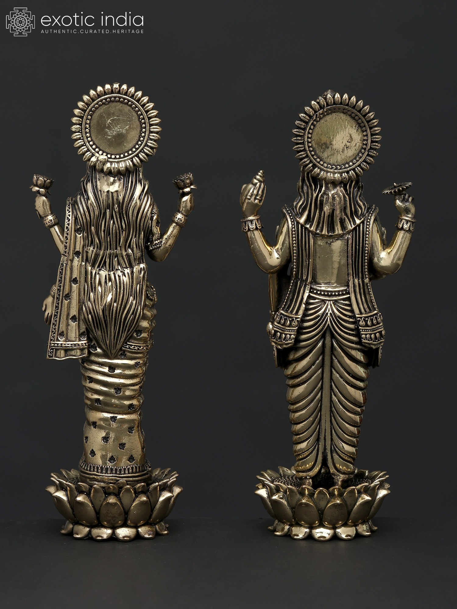 8" Conch with Lord Vishnu and Lakshmi Ji in Brass | Handmade | Made in India