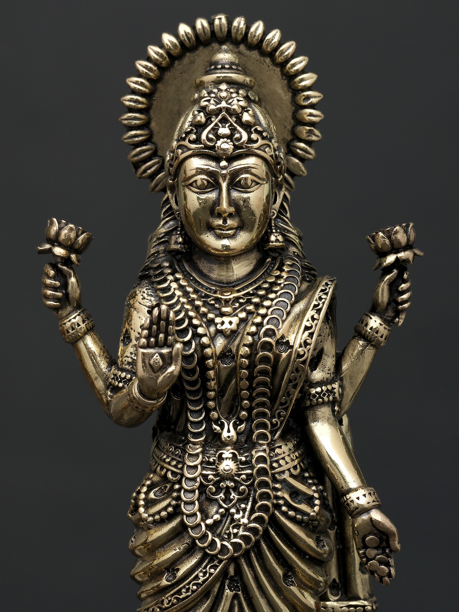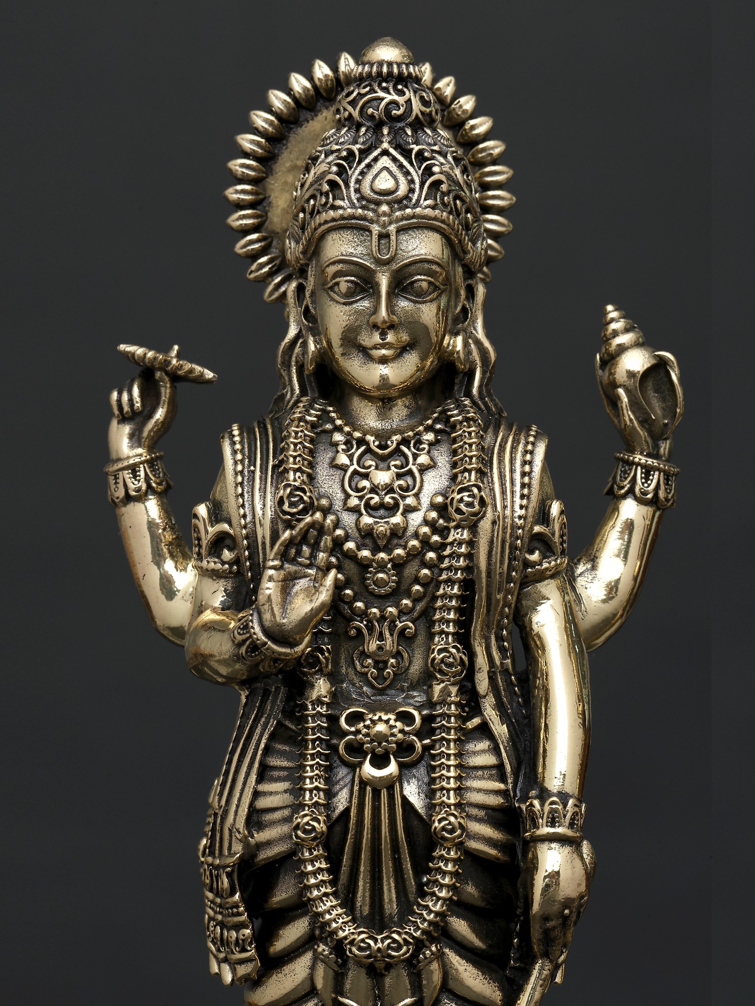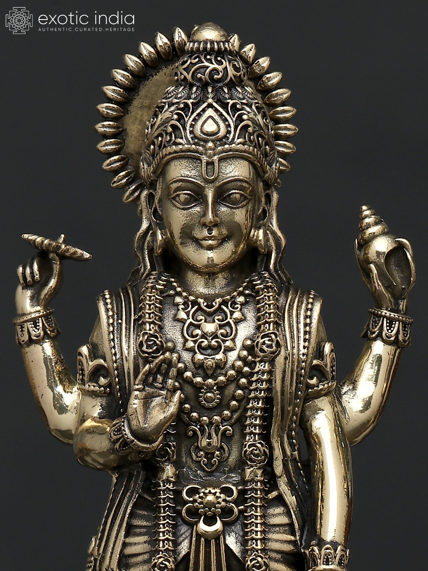 8" Conch with Lord Vishnu and Lakshmi Ji in Brass | Handmade | Made in India