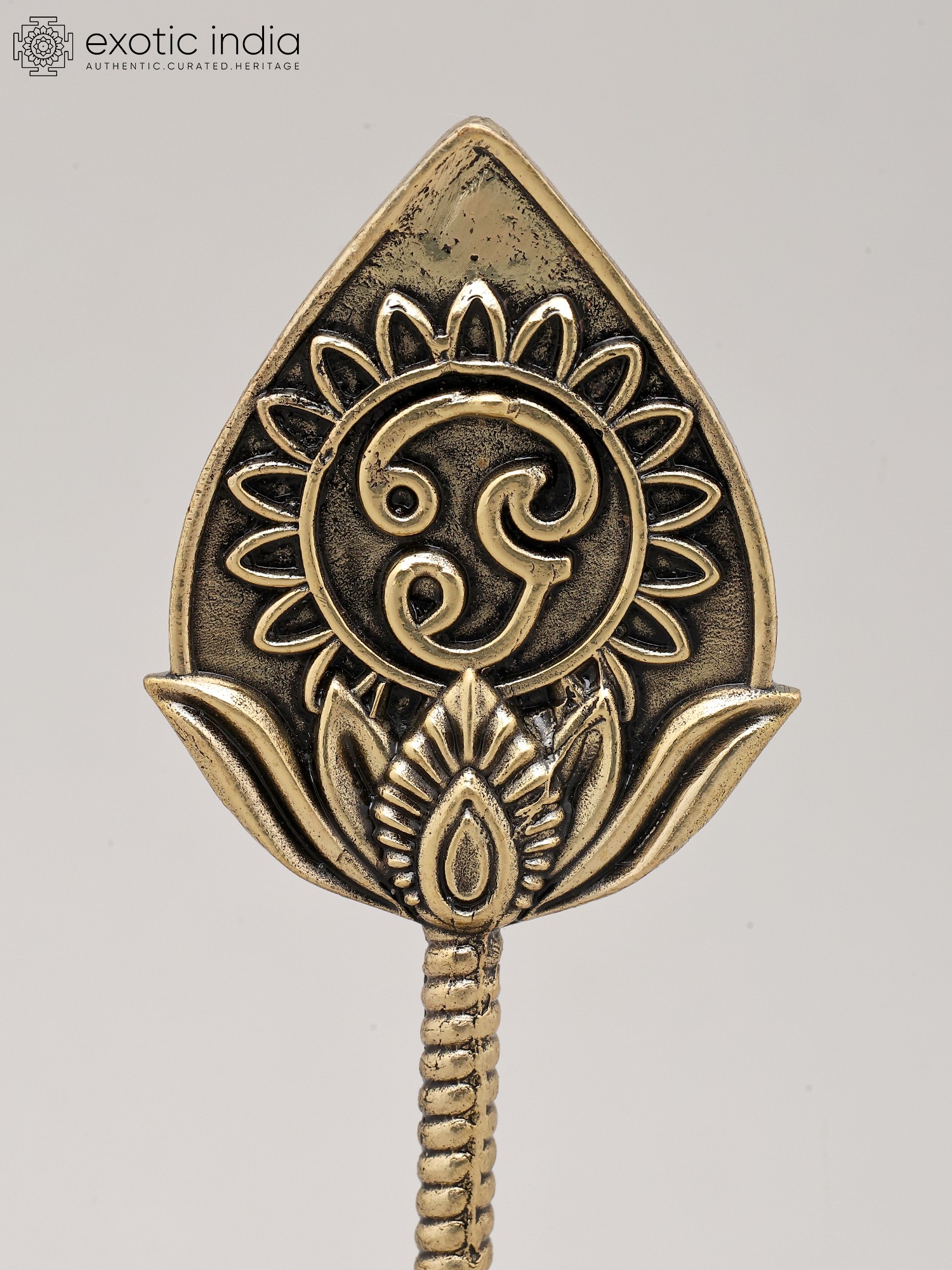 10" Brass Karttikeya Vel with Tamil Om on Stand