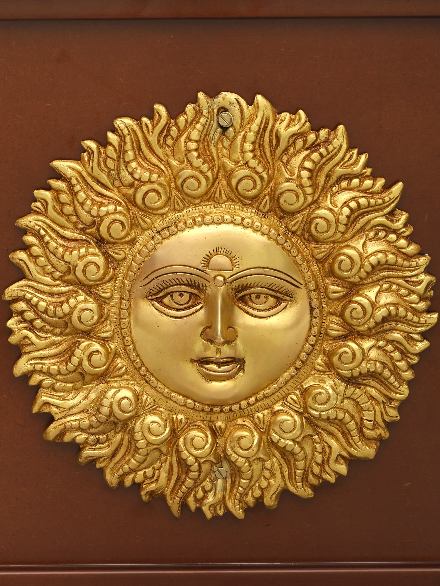16" Lord Surya Wood Framed Brass Sculpture | Wall Hanging