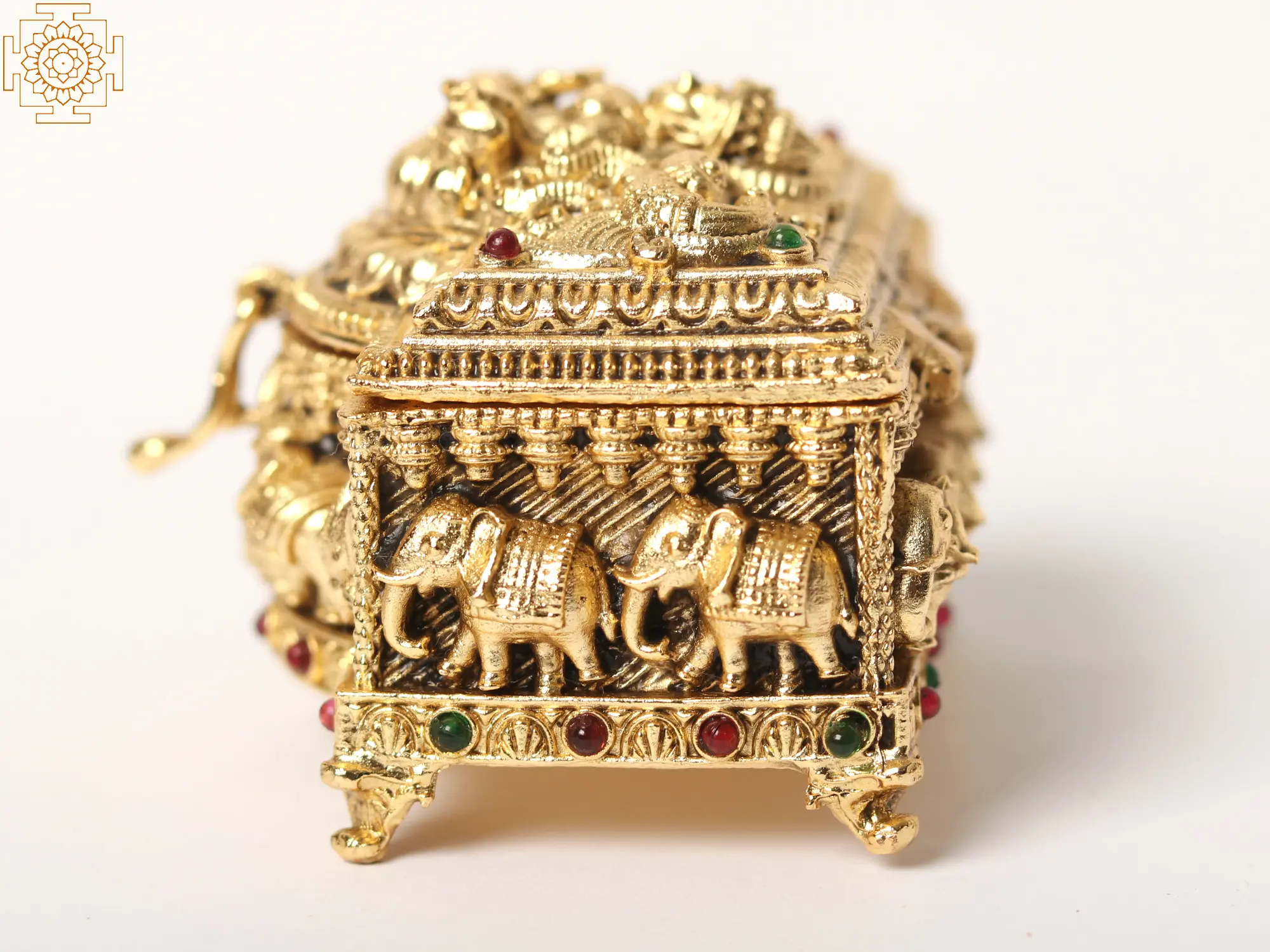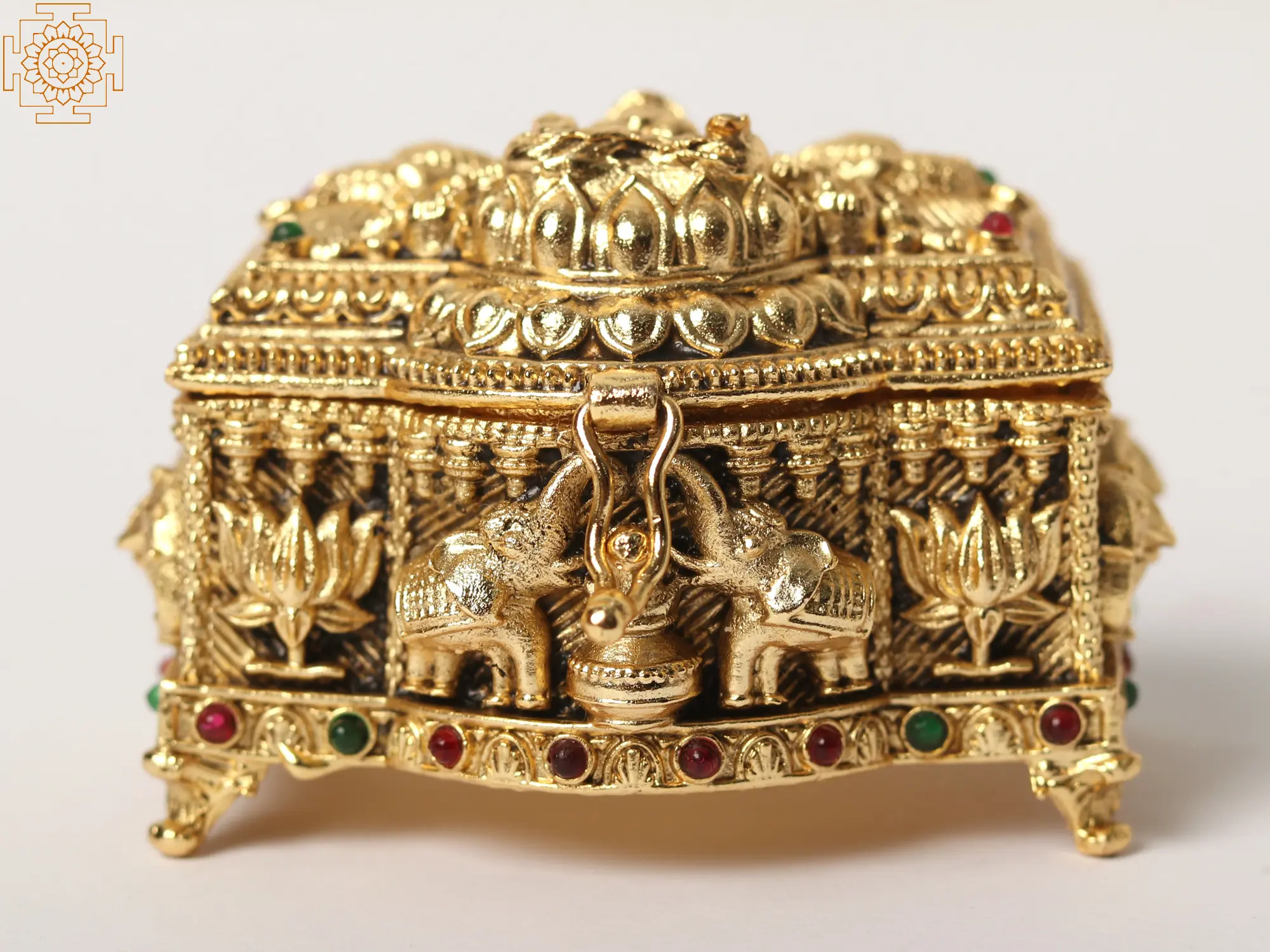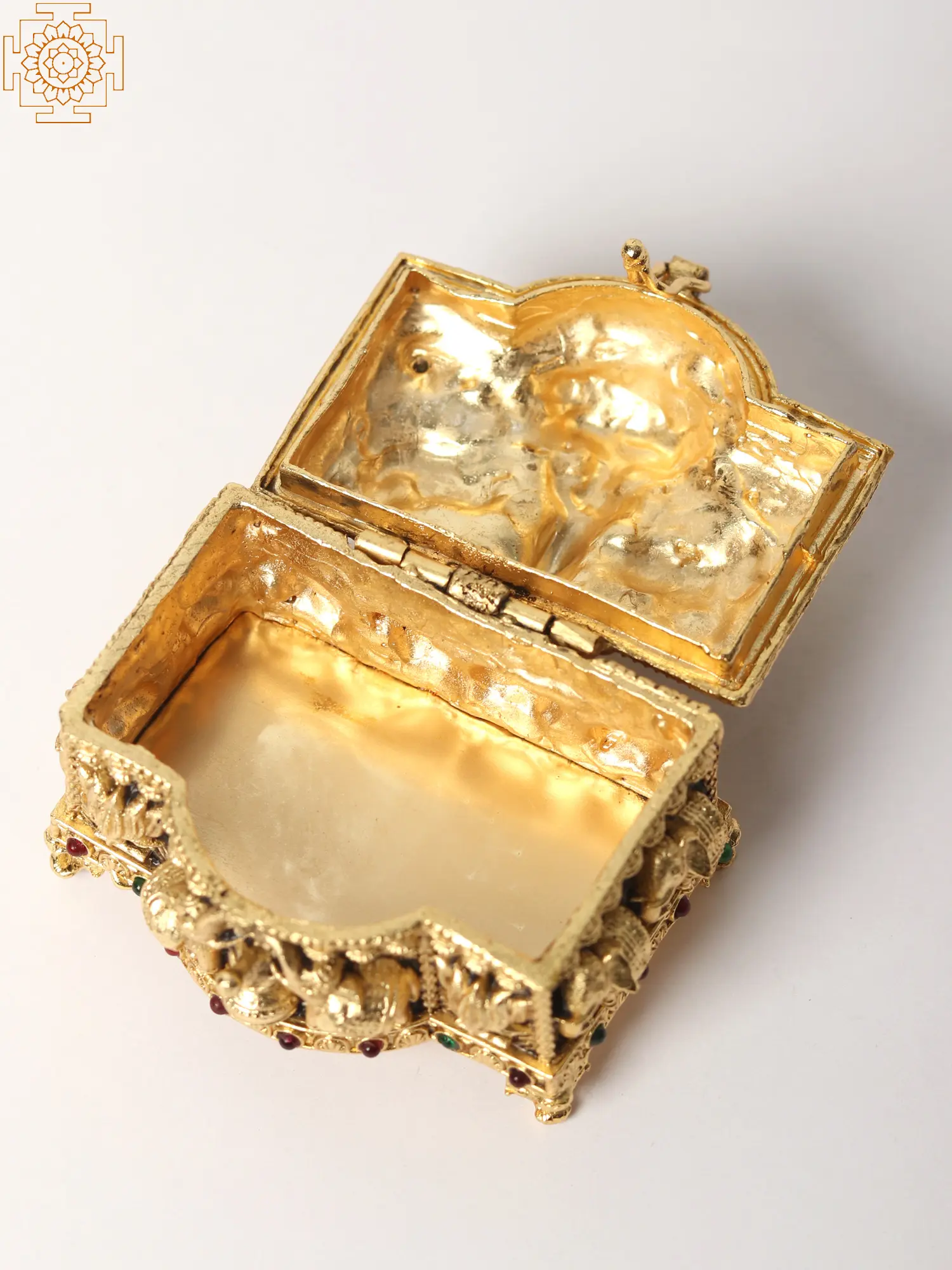 4" Small Brass Storage Box with Ganesha Carving on Top | Brass Ritual Item