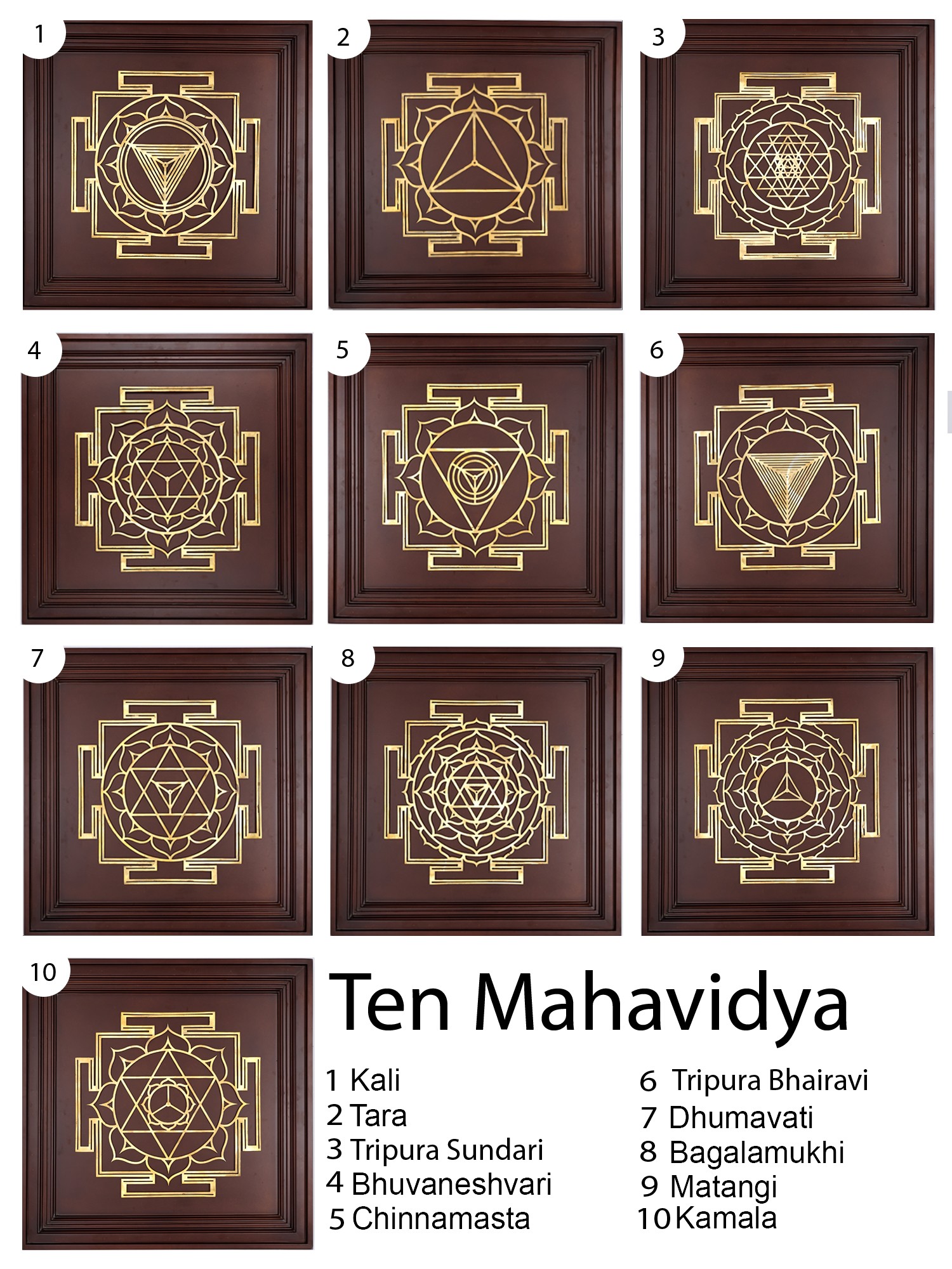 Ten Mahavidya Yantra - (Set of Ten) for Life Guidance on the Path | Brass Yantra on Wood Frame | Wall Hanging
