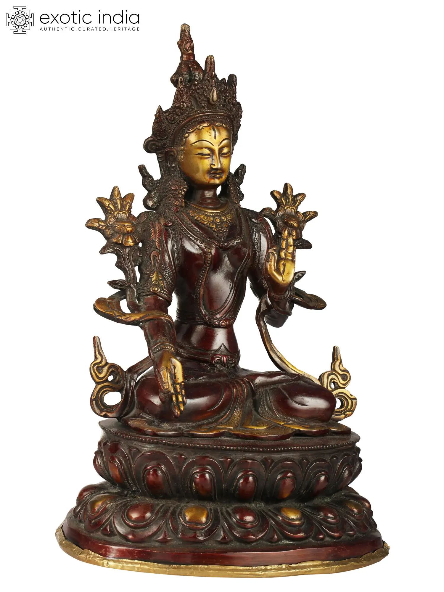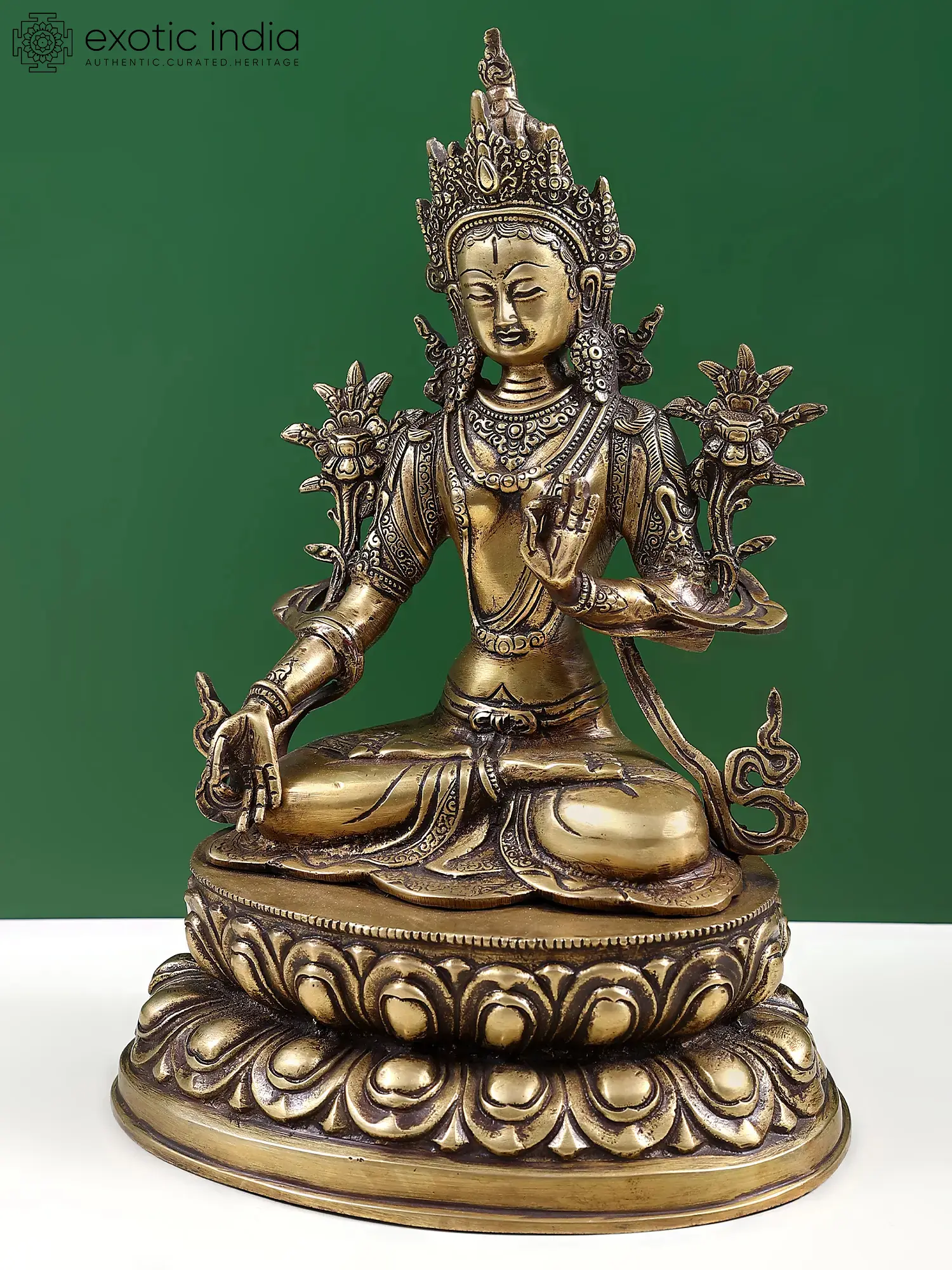 Tara is an important and revered deity in Tibetan Buddhism who appears as a female Bodhisattva. Buddhist monks and followers meditate on the image or deity of Tara to develop some good qualities such as compassion and kindness. Tara is known as the mother of compassion or liberation and is considered the female aspect of Avalokiteshvara (who possesses the compassion of all Buddhas). She manifests in different forms such as Green Tara and White Tara. Green Tara is associated with fearlessness and White Tara, as radiant as the moon, is associated with good health. Tara also appears in red, blue, and yellow colors.