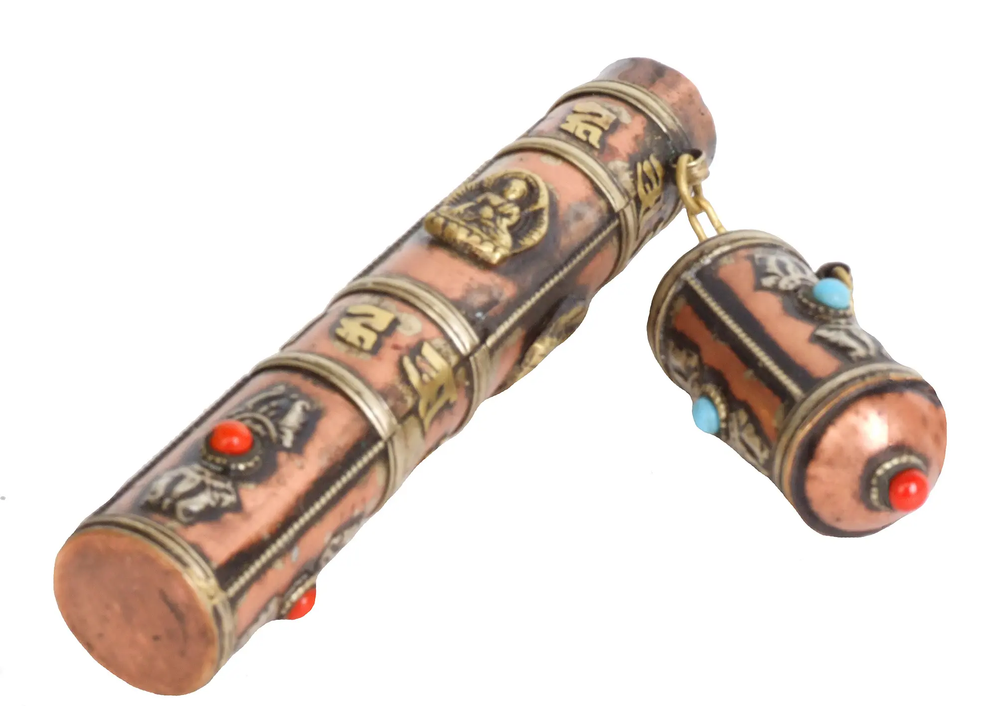 Nepalese statues and sculptures have a high copper content and therefore develop a slightly reddish patina on the surface as they age. However, the most unique feature of Nepalese copper statues is their decorative detailing. The pieces are heavily gilded and sometimes inlaid with semi-precious stones. This embellishment protects them from getting tarnished. The traditional lost-wax method for casting Nepalese copper statues remains the most practiced technique in Nepal for many centuries. This process involves many steps and requires skilled artists.