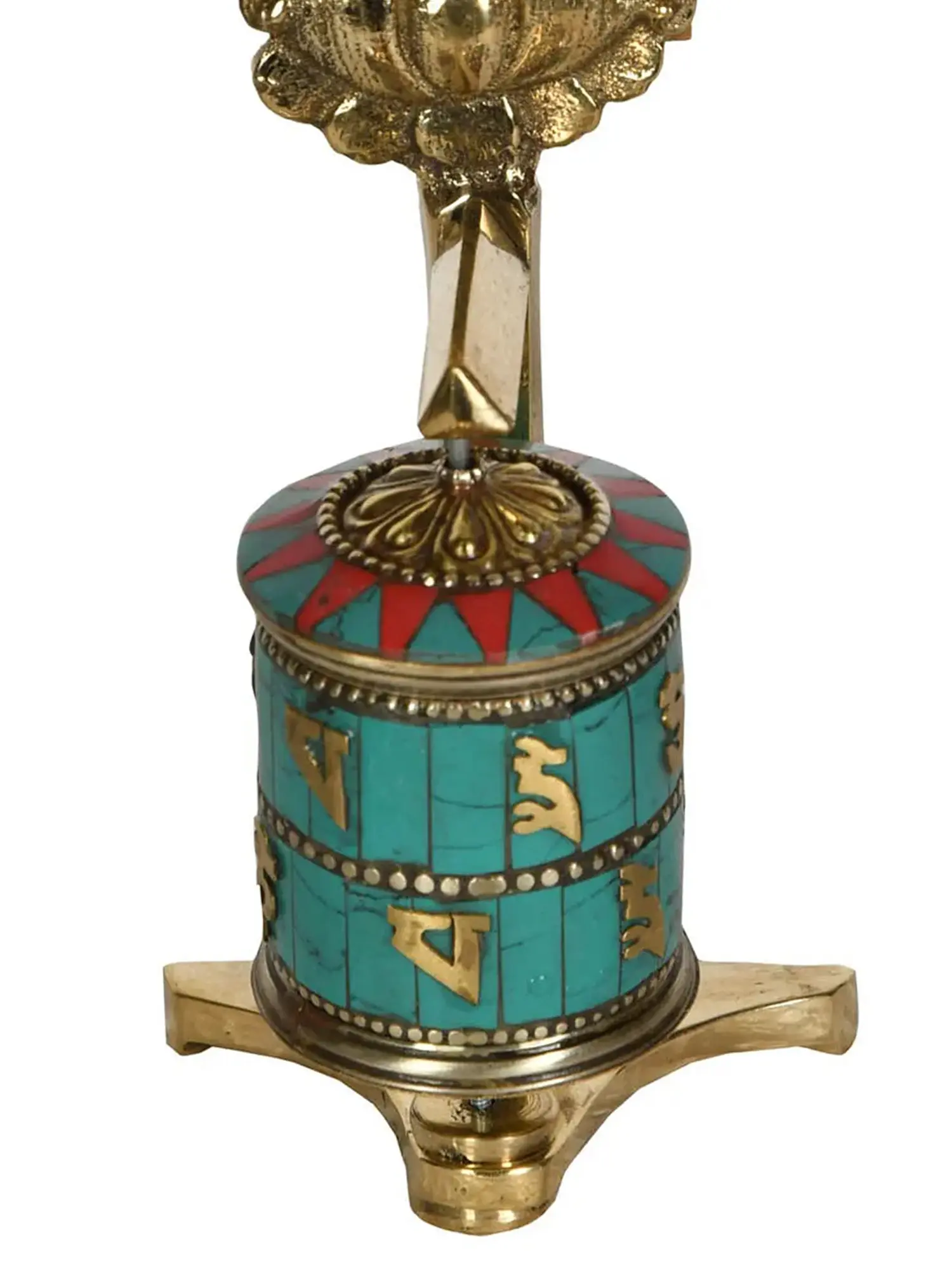 The Prayer Wheel, a revered emblem of devotion, is exquisitely crafted to perfection, bearing the sacred mantras and prayers that infuse every rotation with the blessings of the enlightened ones. As you turn the wheel with intention and reverence, the whispers of the mantras permeate the universe, invoking harmony, compassion, and wisdom. Entwined with the Prayer Wheel's elegant form, the Pair of Fish emerges as a profound symbol of auspiciousness and spiritual prosperity. Their graceful presence represents the deep currents of the Dharma, navigating the waters of existence with grace and insight, guiding you towards the shores of awakening.