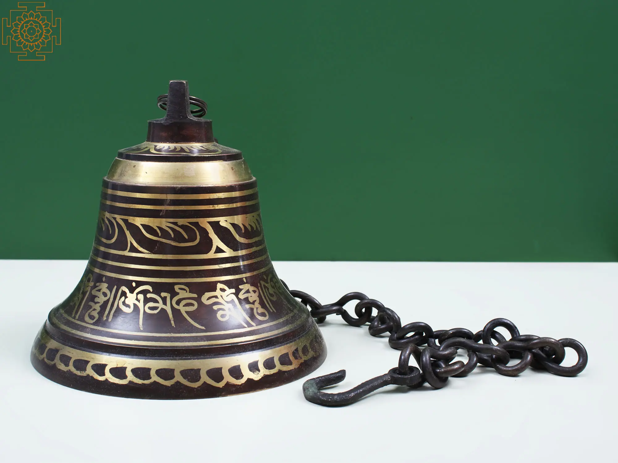 Cast from a blend of metals, this bell bears a profound significance in Tibetan Buddhism. The deep, sonorous tone it emits when rung is said to purify the environment and invoke blessings from the spiritual realms. Its shade, adorned with intricate black and golden, serves as a reflection of the cosmos—a symbol of the interconnectedness of all beings.