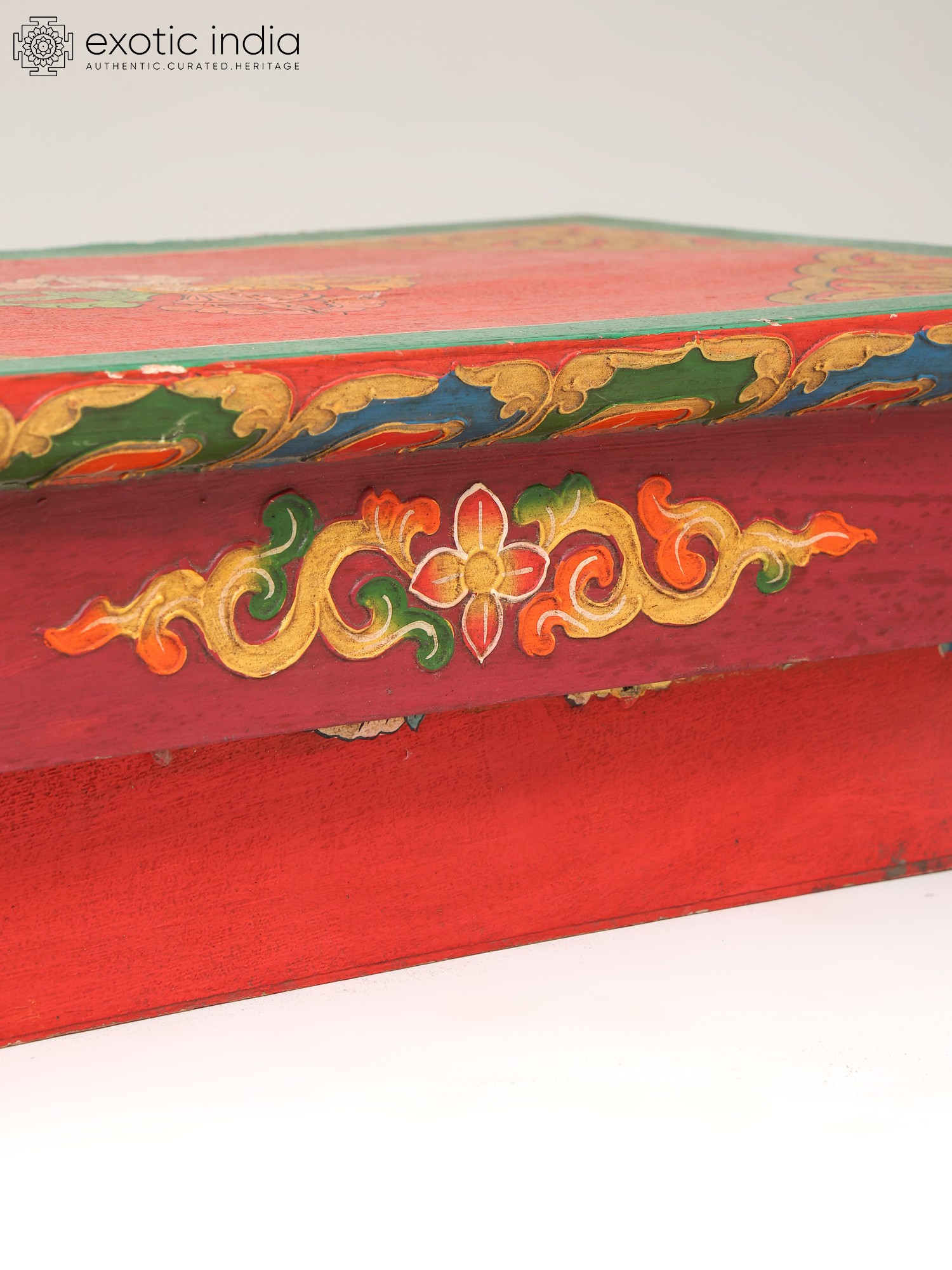 This ritual desk is a testament to the exceptional craftsmanship of Nepali artisans. Nepal, situated at the crossroads of India and Tibet, has a long and rich history of artistic exchange and religious syncretism. The skills and techniques used in its creation are passed down through generations, representing a living tradition. The vibrant colors are achieved using traditional mineral and plant-based pigments, reflecting a commitment to sustainable and ethically sourced materials. Owning this piece is not just acquiring a beautiful object, but also supporting a vibrant cultural tradition and the skilled hands that bring it to life.