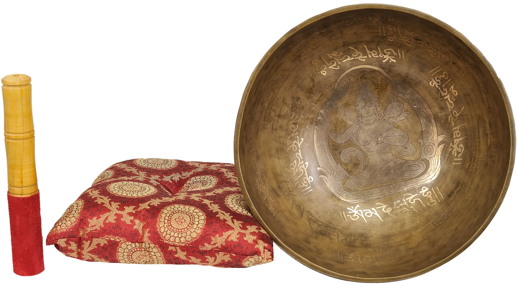5" Tibetan Buddhist Brass Singing Bowl with Image of Vishwa Vajra Inside | Handmade