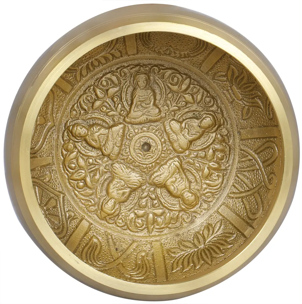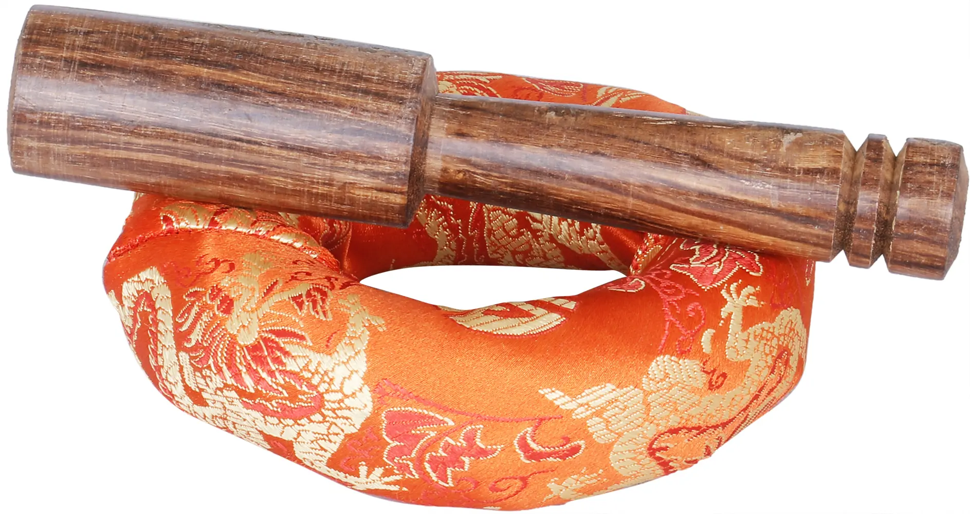 This singing bowl is designed to be a focal point for mindfulness and a source of positive vibrations in any space. The accompanying wooden striker, ergonomically designed for comfortable handling, allows for effortless creation of the bowl's captivating tones. The rich, golden hue of the brass, combined with the deep grain of the wood striker, creates an aesthetic that is both visually appealing and spiritually grounding. Often, singing bowls are placed on specially designed cushions, such as the vibrant, dragon-embroidered cushion included, symbolizing protection, strength, and good fortune. In Tibetan culture, the dragon is a powerful celestial being, a guardian of treasures and a bringer of rain, embodying auspicious energy. By integrating this singing bowl into your daily life, you invite not only a sense of calm but also the blessings of ancient wisdom and protective energies. It serves as a constant reminder to seek balance, cultivate inner peace, and embrace the profound beauty of sound and spirituality.