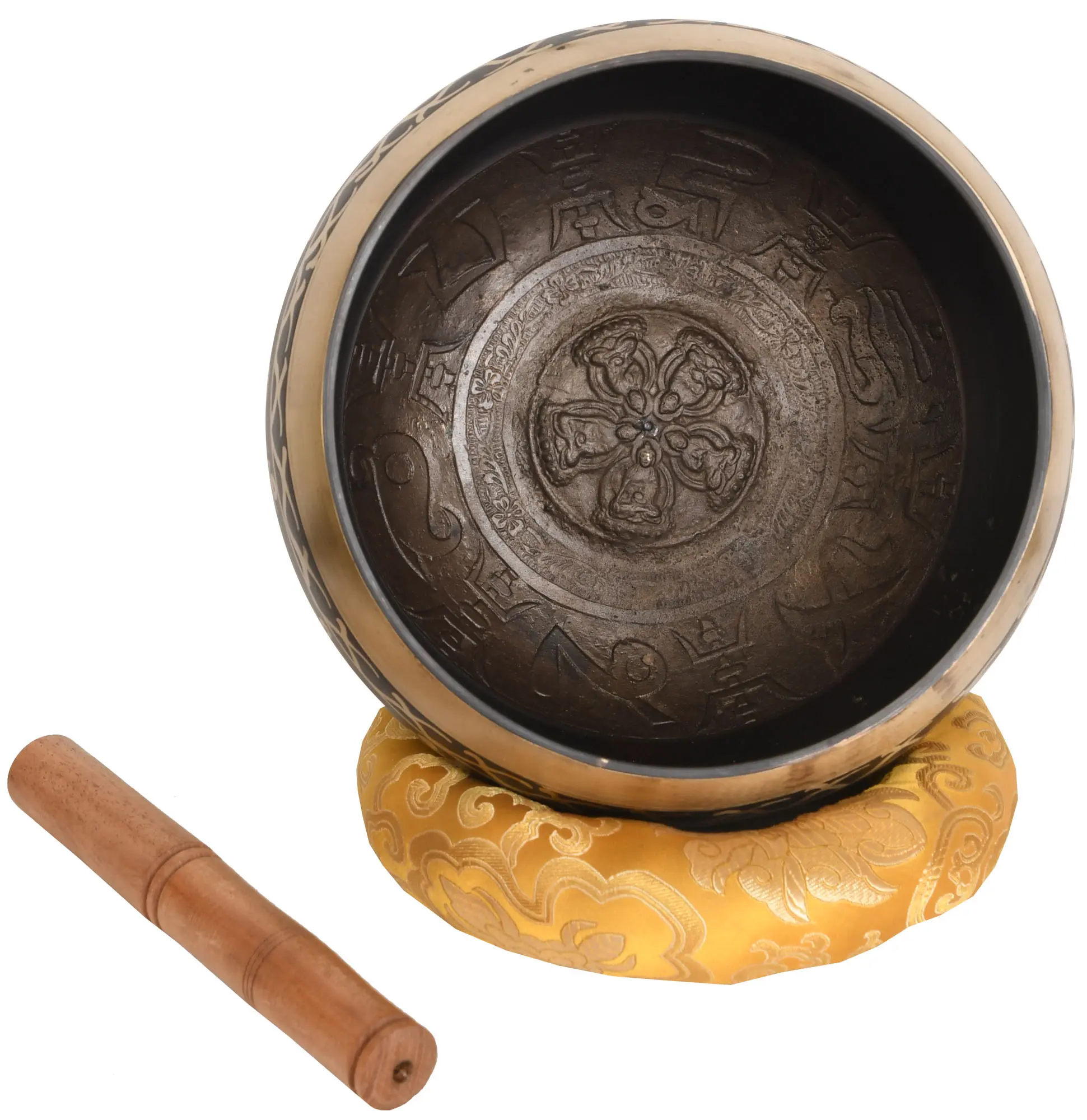 5" Tibetan Buddhist Brass Singing Bowl with Image of Vishwa Vajra Inside | Handmade