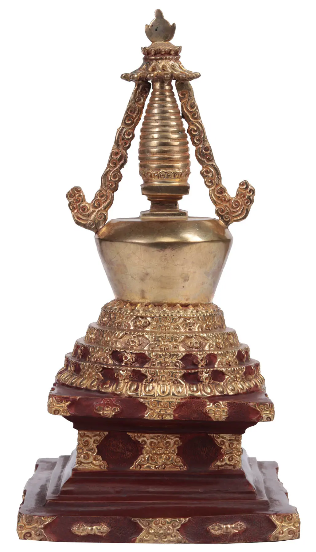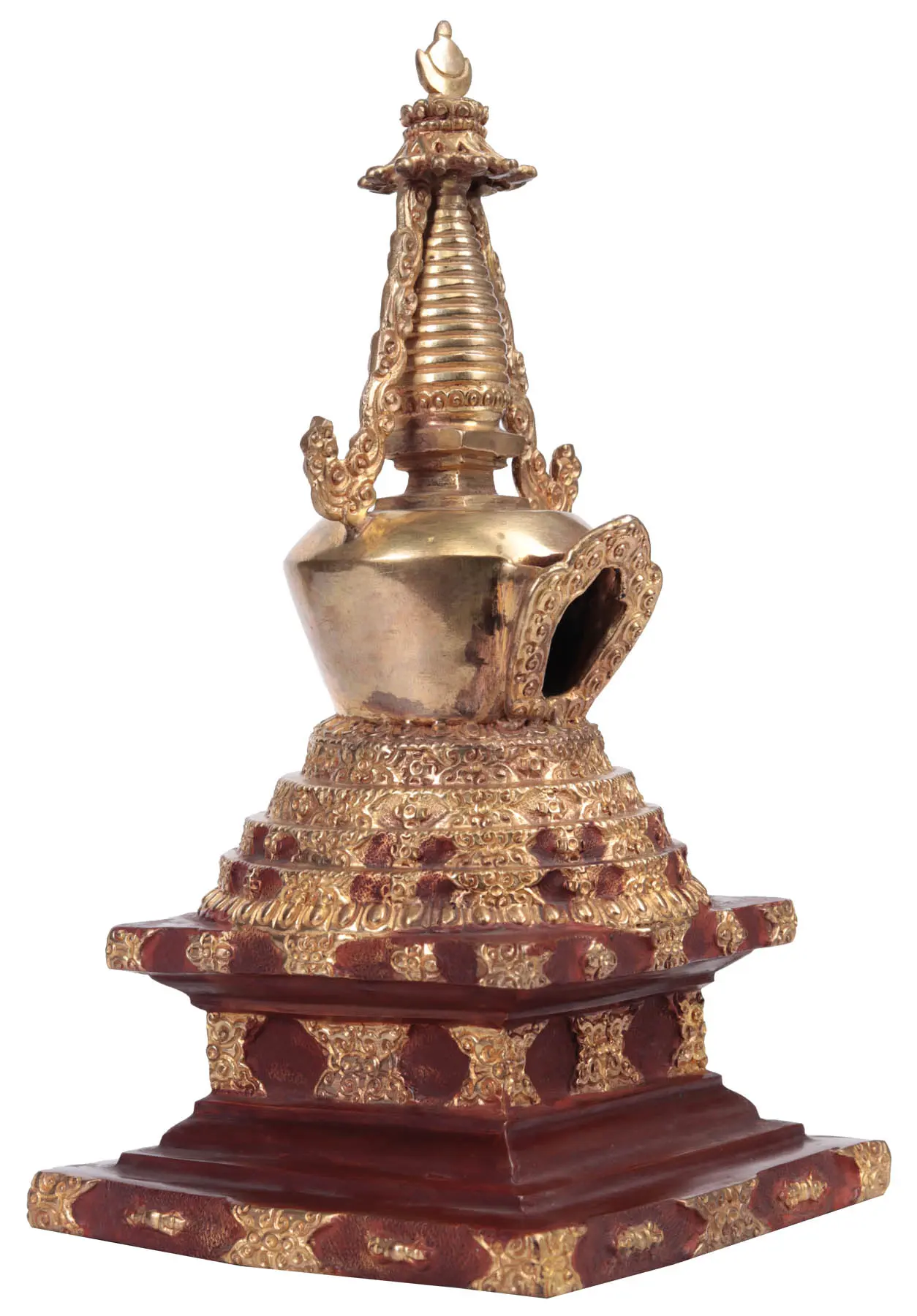 Chortens are one of the most interesting kind of monuments in the Orient. The precincts of each one holds a unique episode of history. This replica, sculpted with great skill from brass, has a finish as glowing and as resplendent as enlightenment itself. No lover of the Orient could be making a mistake with such a meaningful buy.