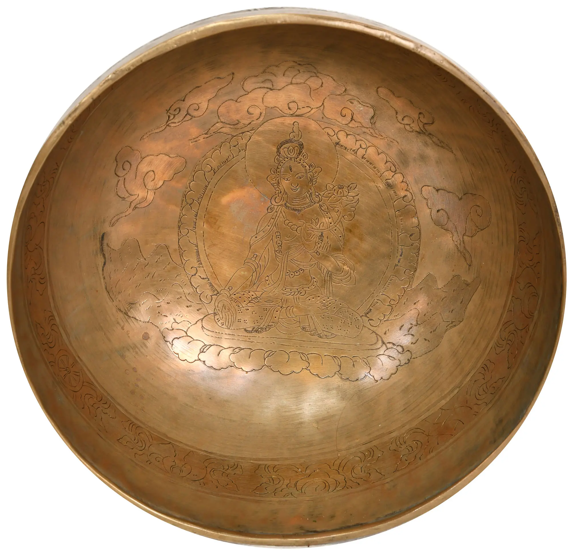 Singing Bowl with Five Dhyani Buddhas and Syllable Mantra (Tibetan Buddhist)