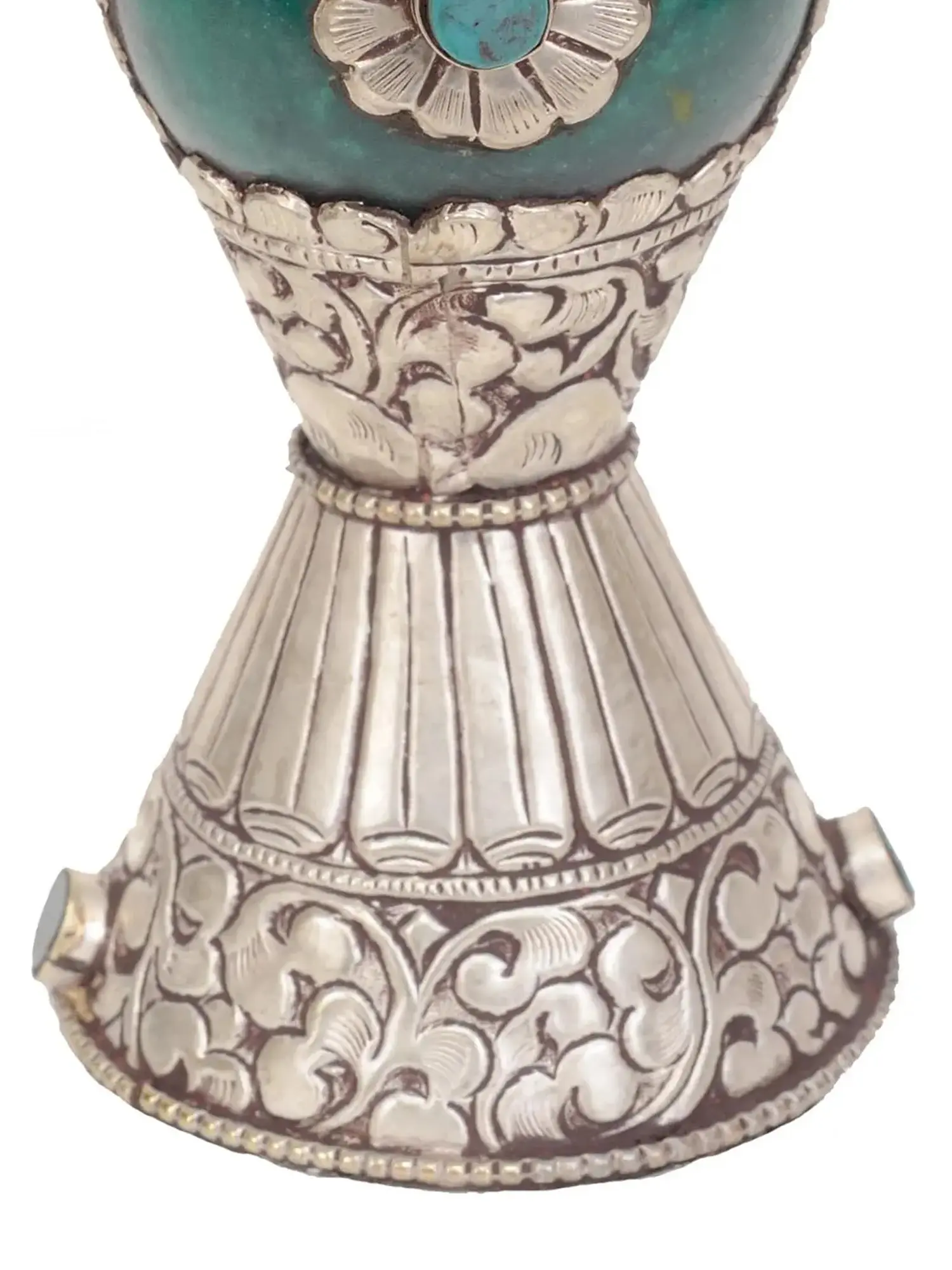 The Tibetan Buddhist Vishva-Vajra, also known as the Double Dorje, is a sacred and powerful symbol deeply rooted in the Tibetan Buddhist tradition. This seal consists of two interlocking Vajras, symbolizing the unshakable and indestructible nature of spiritual enlightenment and the union of compassion and wisdom. The Vajra, often called the thunderbolt or diamond scepter, represents the indivisibility of all phenomena and the awakening of one's true nature. The Vishva-Vajra Seal is employed in rituals, ceremonies and as a protective emblem. It signifies the practitioner's commitment to the path of enlightenment, reminding them of the boundless wisdom and compassion that lie at the core of Tibetan Buddhism.