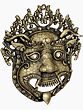 The very image sends a chill down the adharmee’s spine. The protruding eyes, shaped like the fish of the deep seas, are hollow where the pupils should be. His portentous brow is like the black cloud of a fatal storm. Right beneath the widely defined nose is a line of bared teeth, all canines that are designed to eat into adharma. From the lower edge of the hollow of the mouth hangs a fierce tongue. There is no escaping the clutches of a deity such as Mahakala.