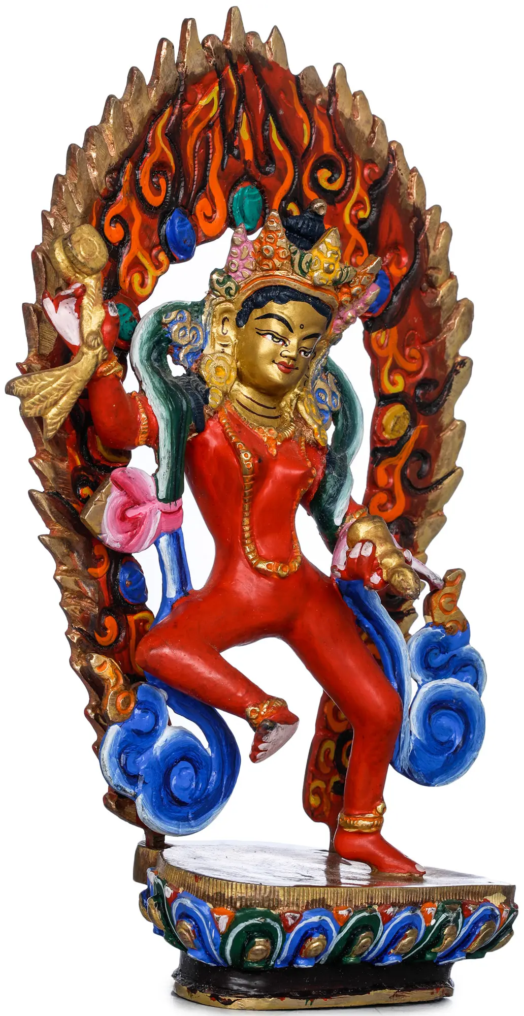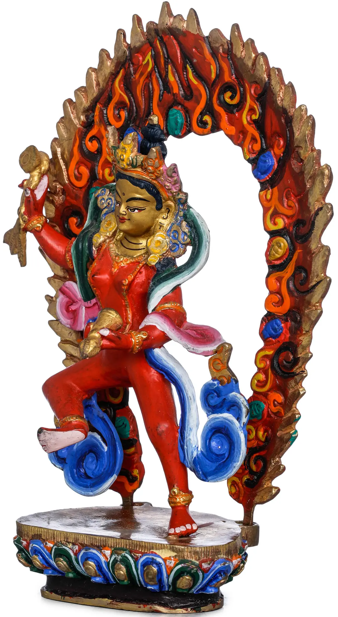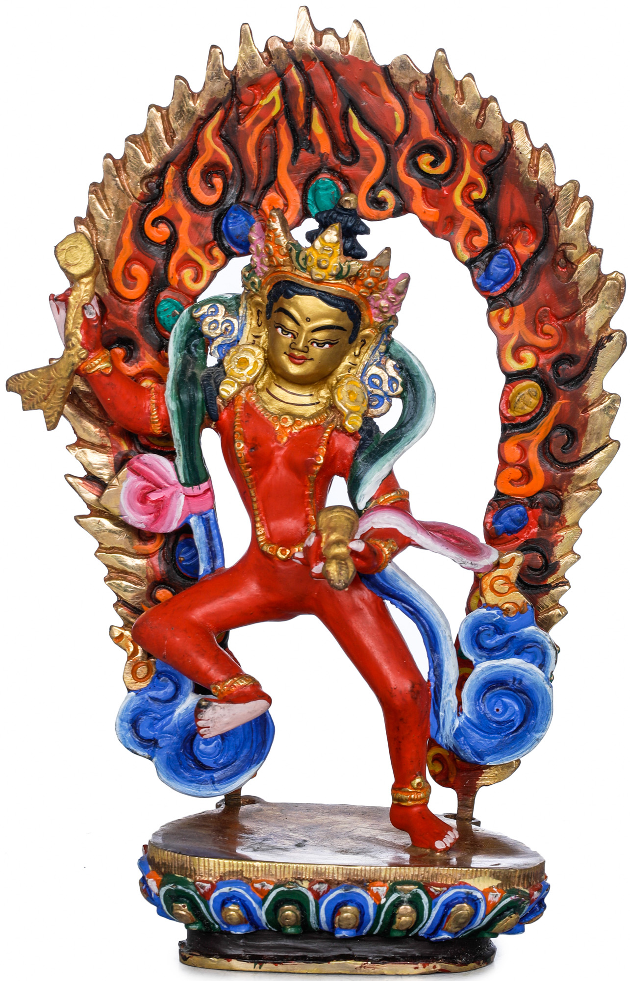 Now comes the most important part of Nepalese art which is gold gilding. This is done by the traditional fire gilding method. A mixture of mercury and 18K gold is applied on the surface of the statue and heat is applied using a flame torch. The result is that mercury evaporates along with impurities, leaving a pure 24K gold finish.