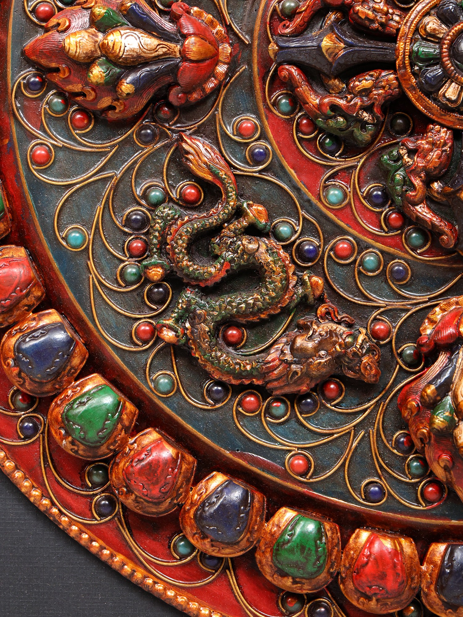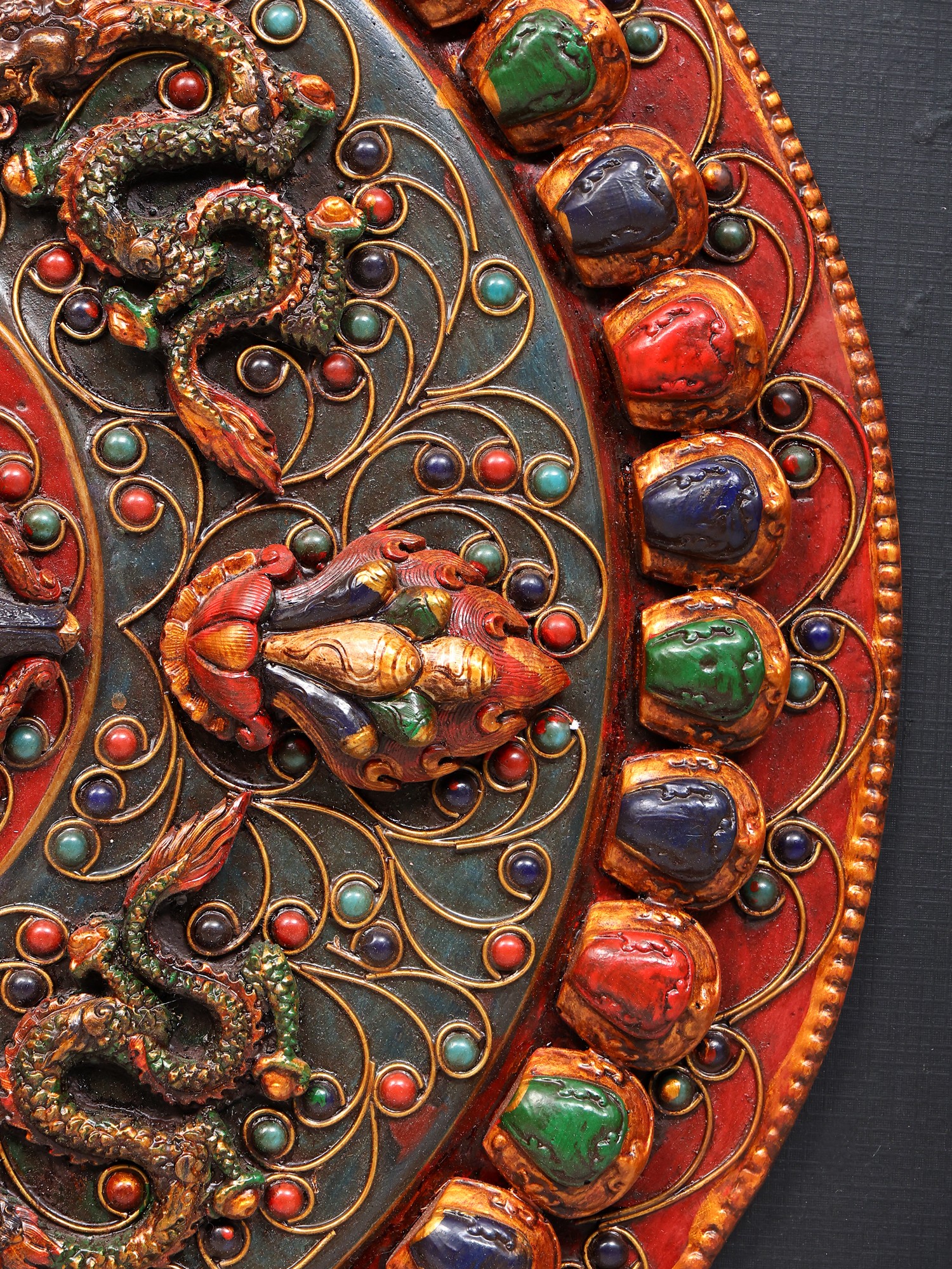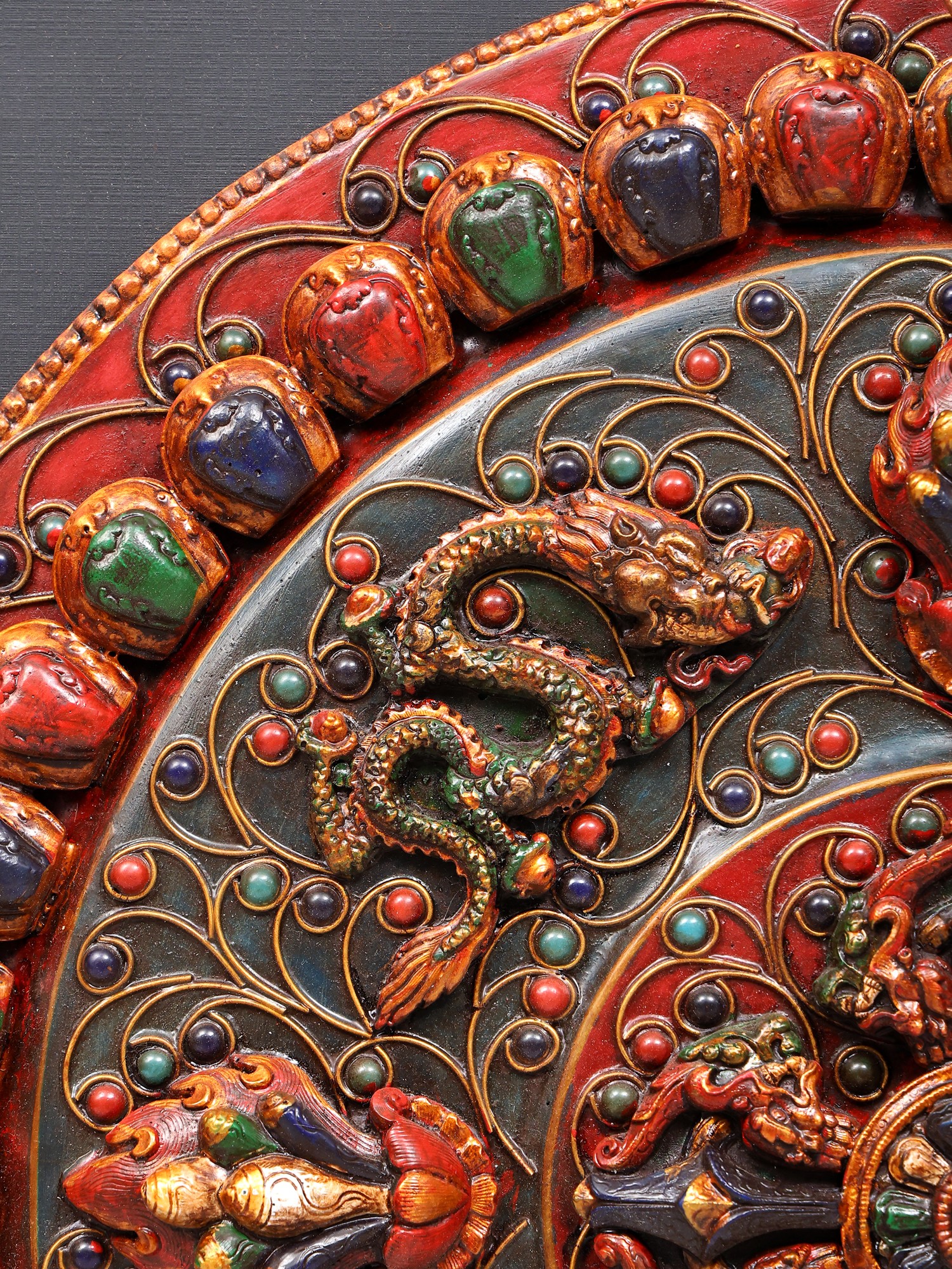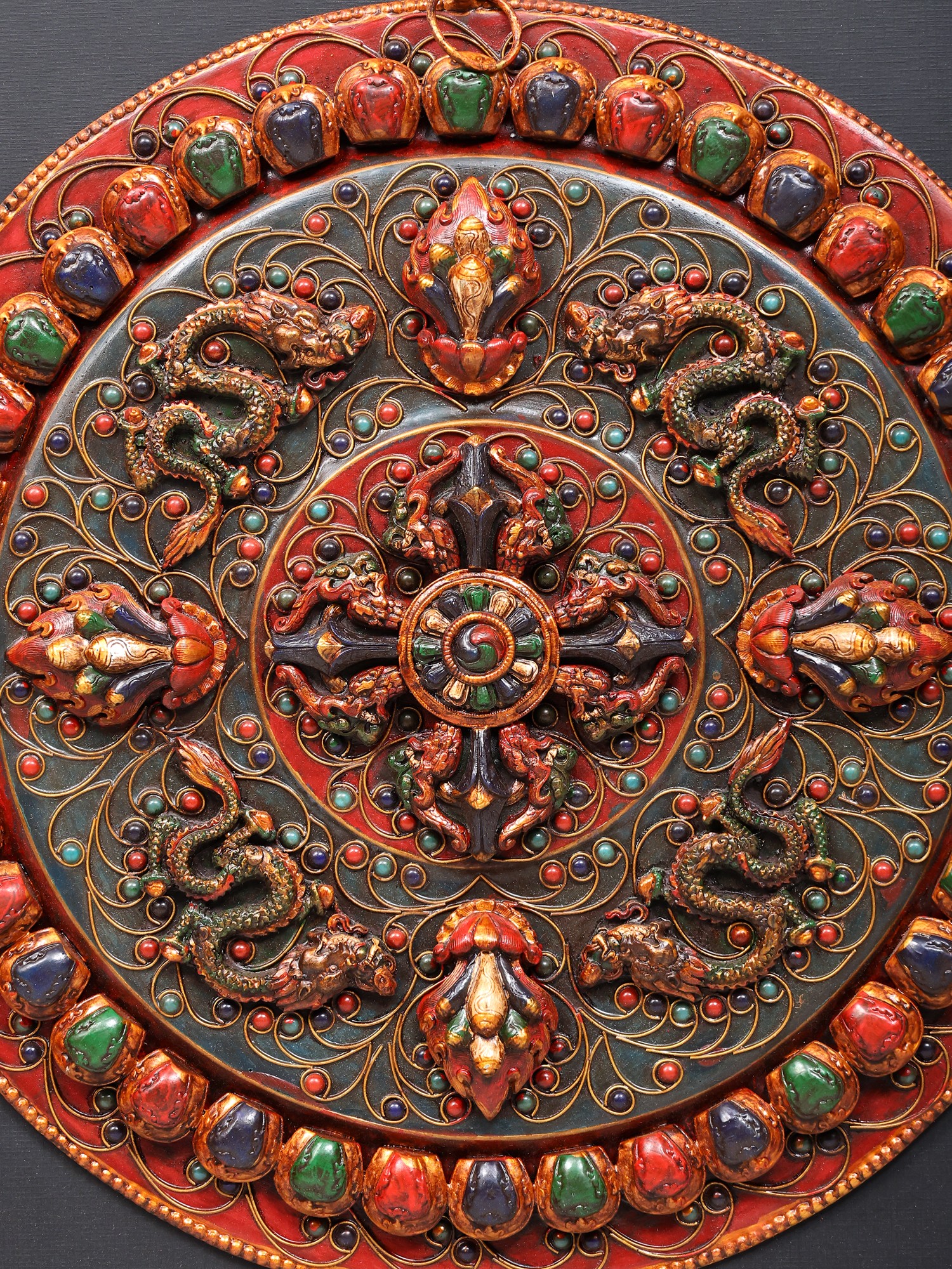 Features a detailed Tibetan Dragon Mandala motif, symbolizing power and good fortune.