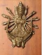 This exquisite wall hanging showcases the formidable Goddess Durga, a central figure in Hindu mythology. Depicted with her ten arms wielding various weapons, she embodies strength, courage, and the triumph of good over evil. The intricate detailing of the brass Durga figurine, crafted using the ancient lost-wax casting technique of Dhokra, brings this powerful deity to life. The rich golden hue of the brass beautifully contrasts with the warm tones of the polished wood backing, creating a captivating visual appeal. This piece is more than just a candle holder; it's a statement of faith and a celebration of artistic heritage.