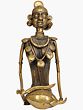 The tribal lady has uni eyebrows, a broad nose and full lips. Her hair is styled in tight braids. The ingenious woman is bearing coiled wire around her neck which is an indication she hails from the tribe. She is wearing a long necklace made of copper and silver coins. The tribal cutting of brinjal is a rusted statue. Add some antique inventive artistry to your living room or bedroom decor that is only available on Exotic India Art.